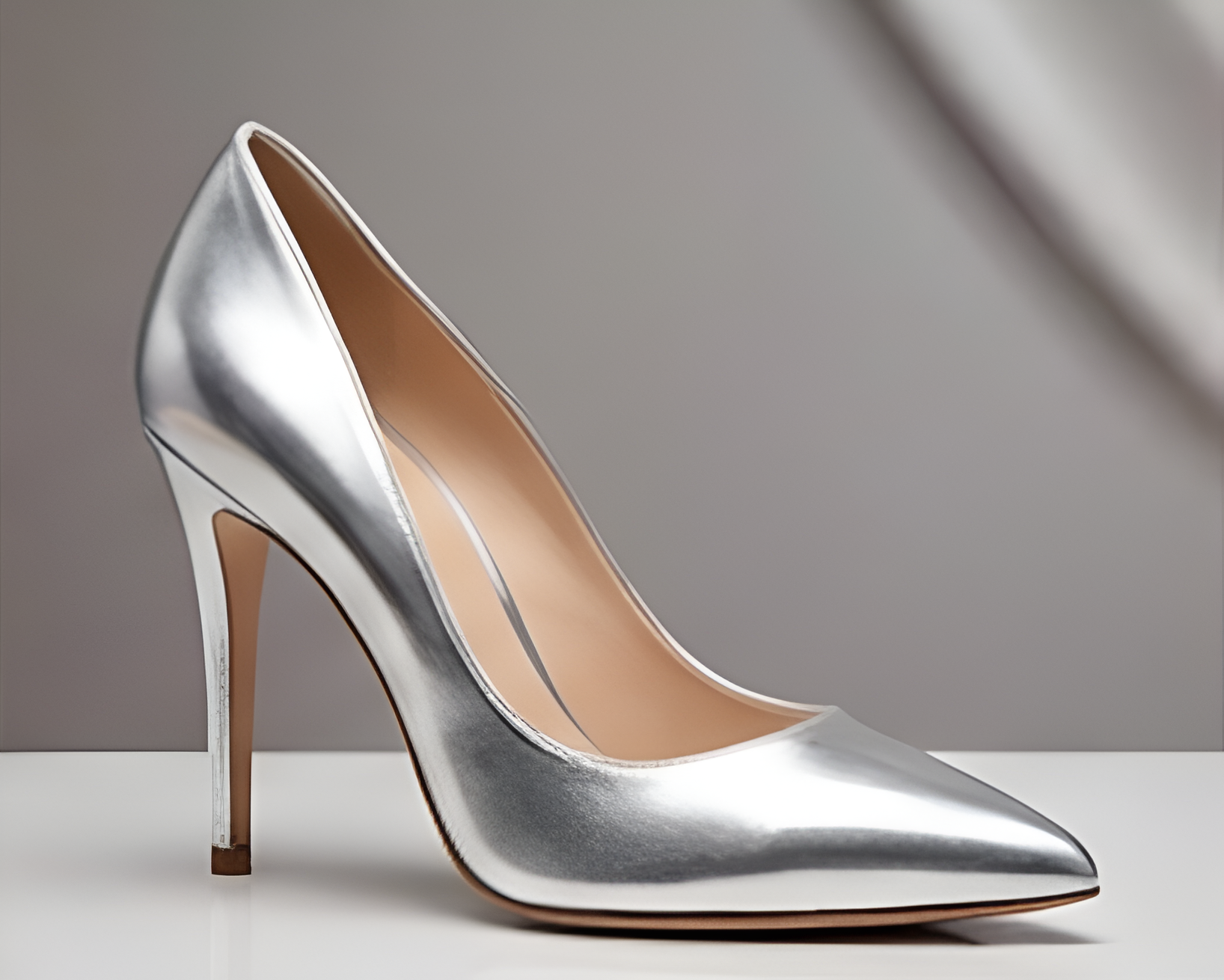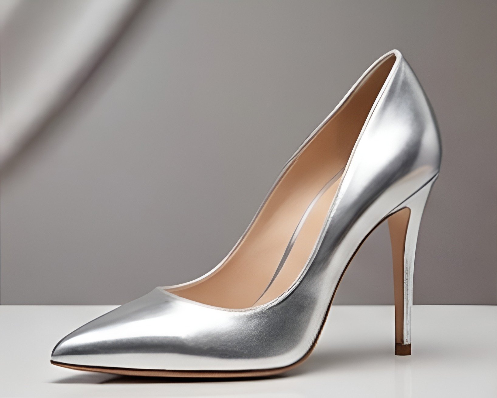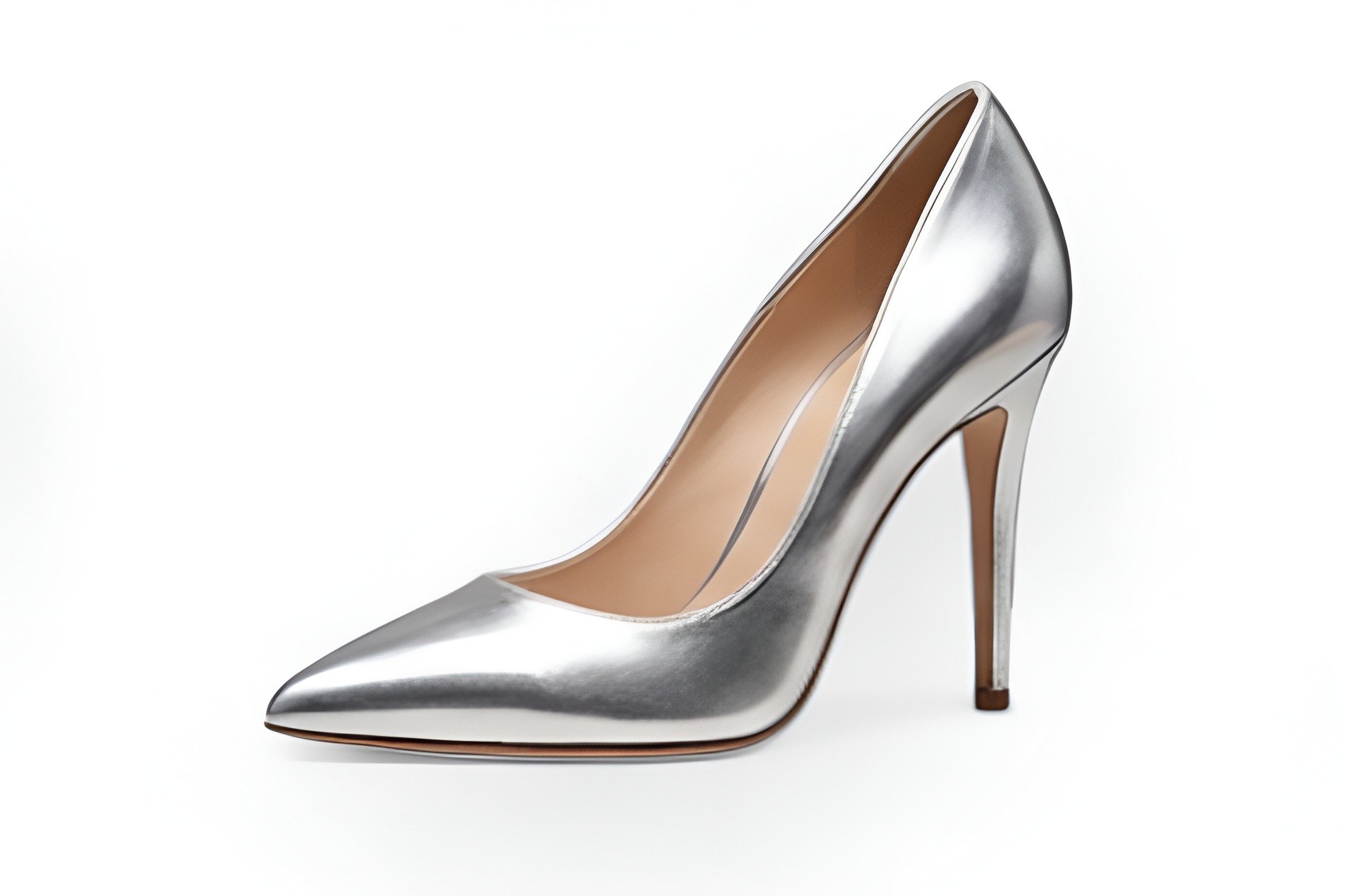 Crafted Leather Classic Luxury Handcrafted Women’s Silver Leather High Heel Pointed Toe Dress Shoes