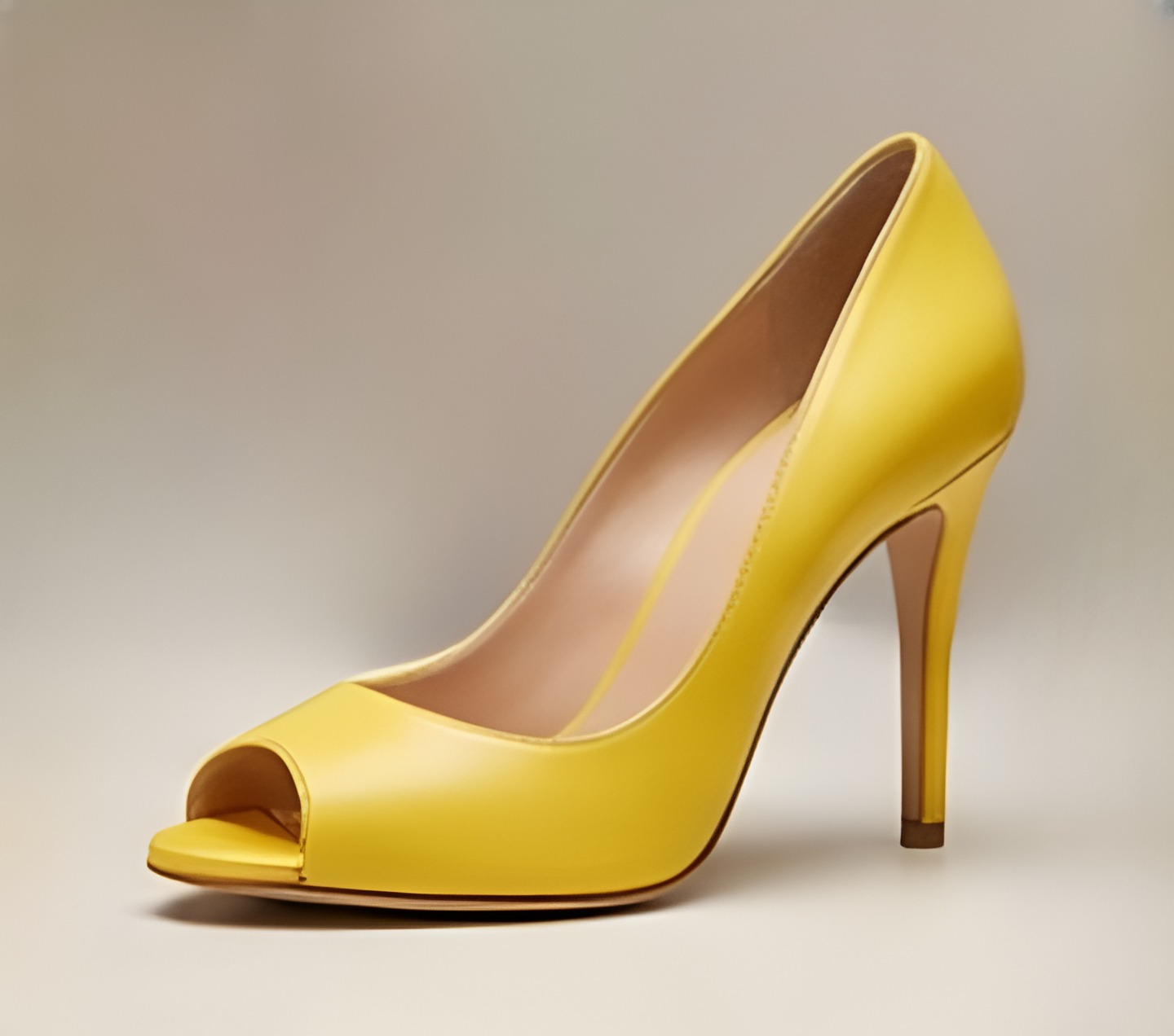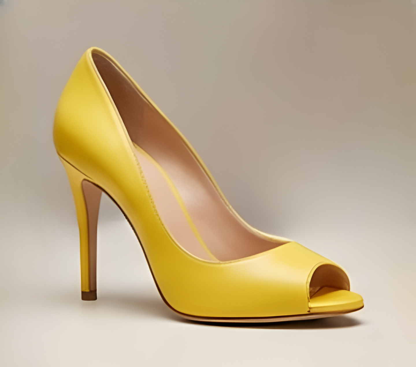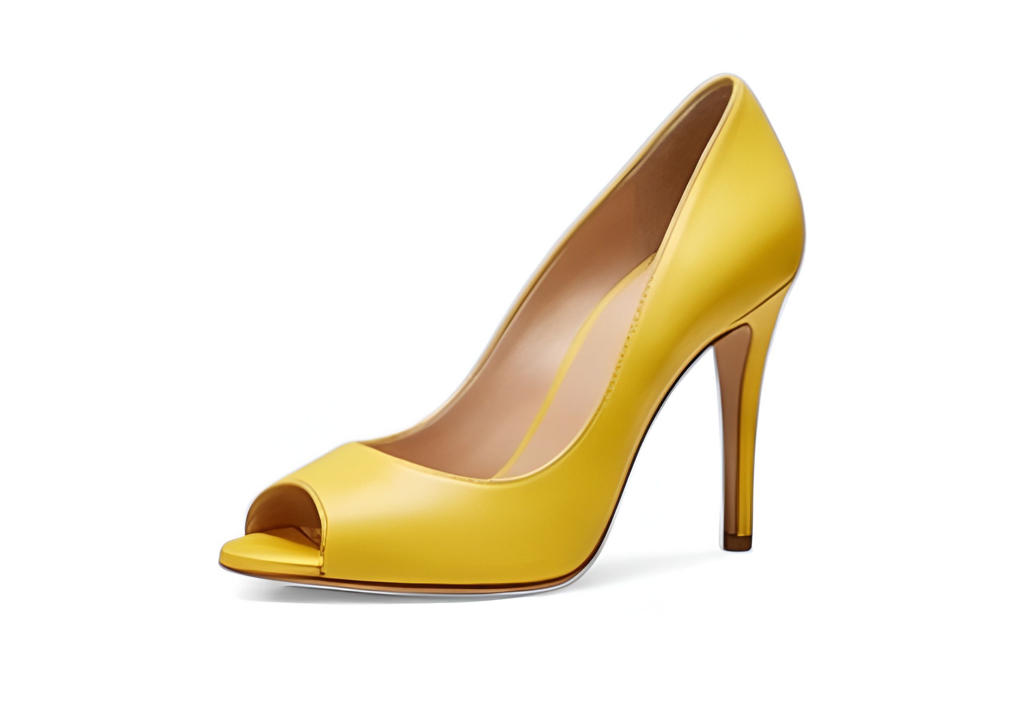 Crafted Leather Classic Women’s Dress Shoes High Heel Yellow Leather Open Toe Design