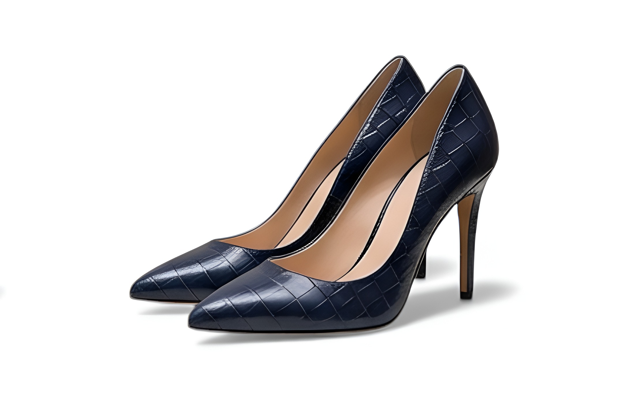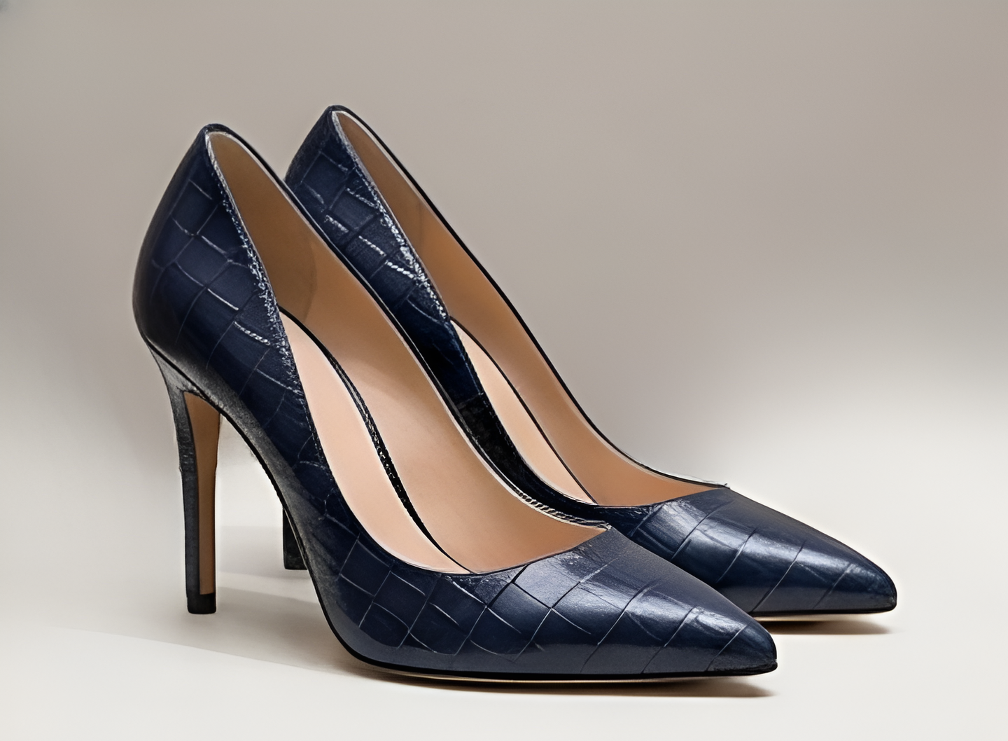 Crafted Leather Classic Women’s Navy Crocodile/Alligator Shoes Elegant High End Evening Wear Style."