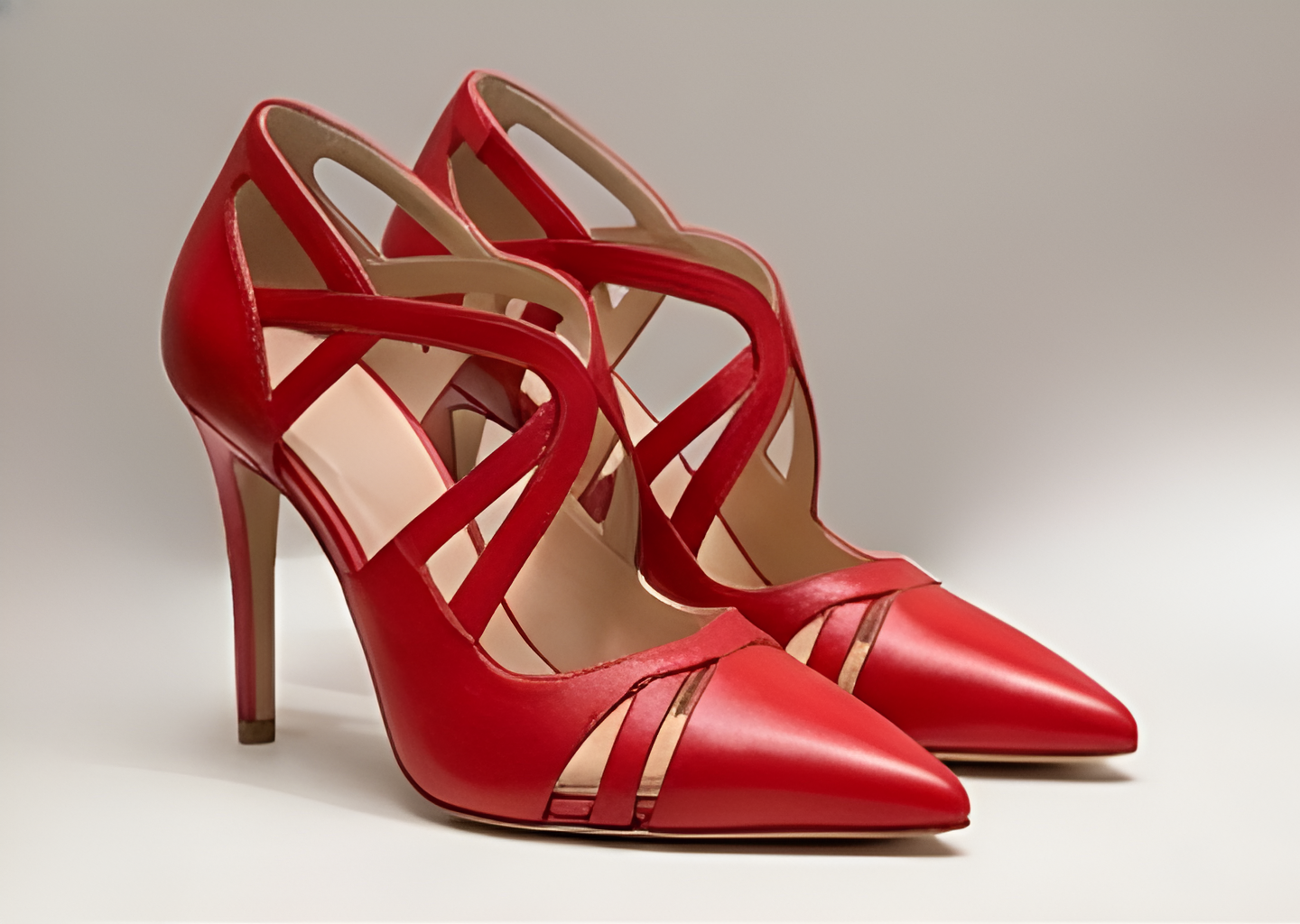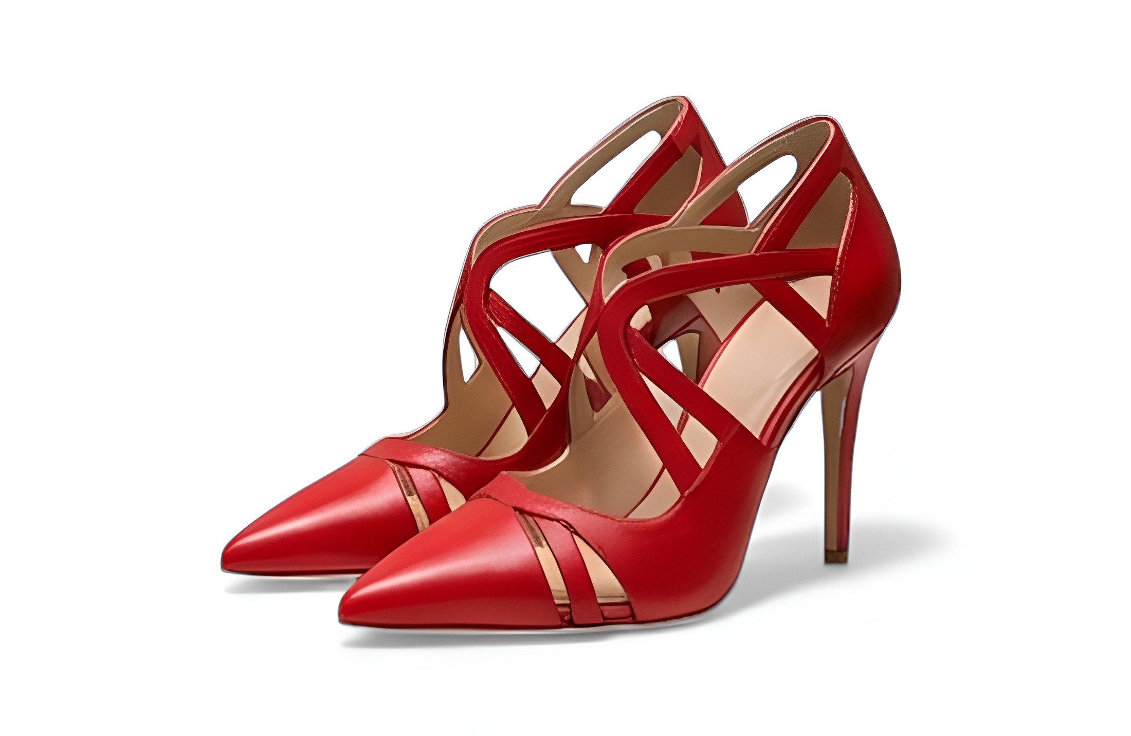 Crafted Leather Classic Women Striking Red Leather High Heel Dress Shoes Pointed Toe with Bold Strap