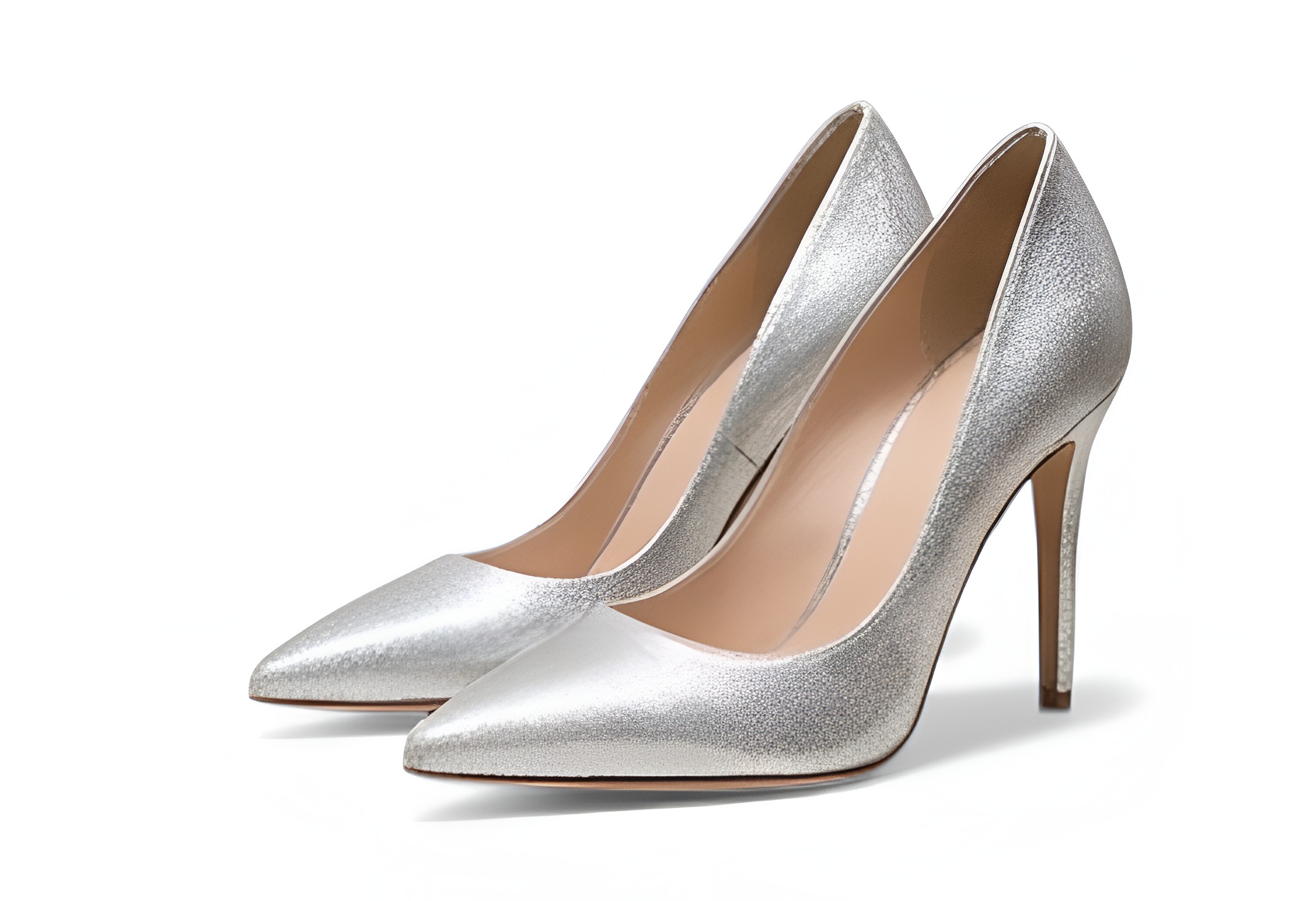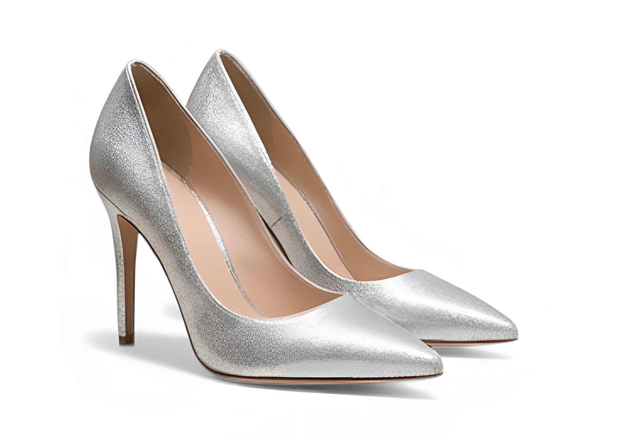 Crafted Leather Classic Luxury Handcrafted Women’s Silver Leather High Heel Dress Shoes Pointed Toe Perfect For Evening Parties