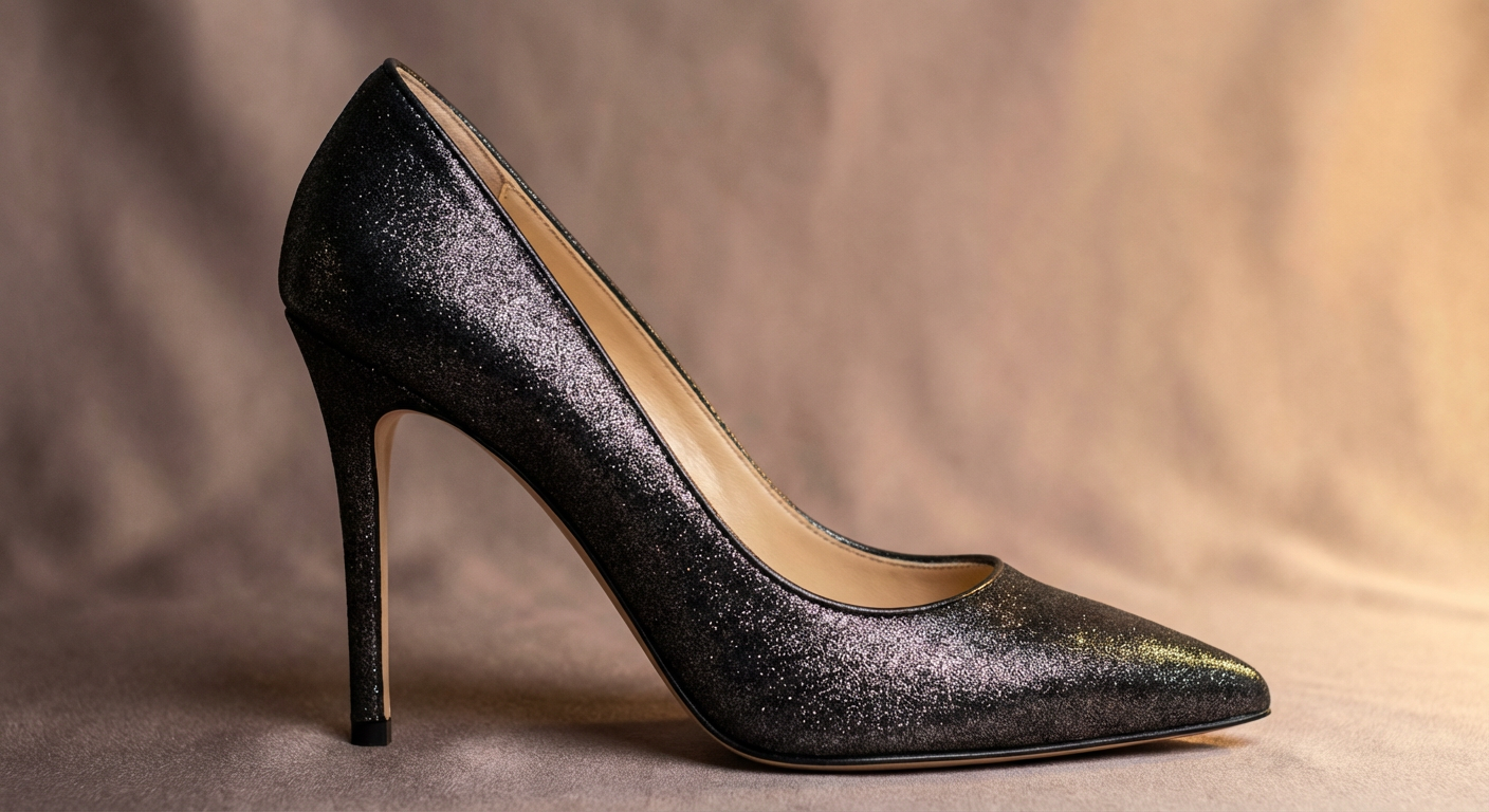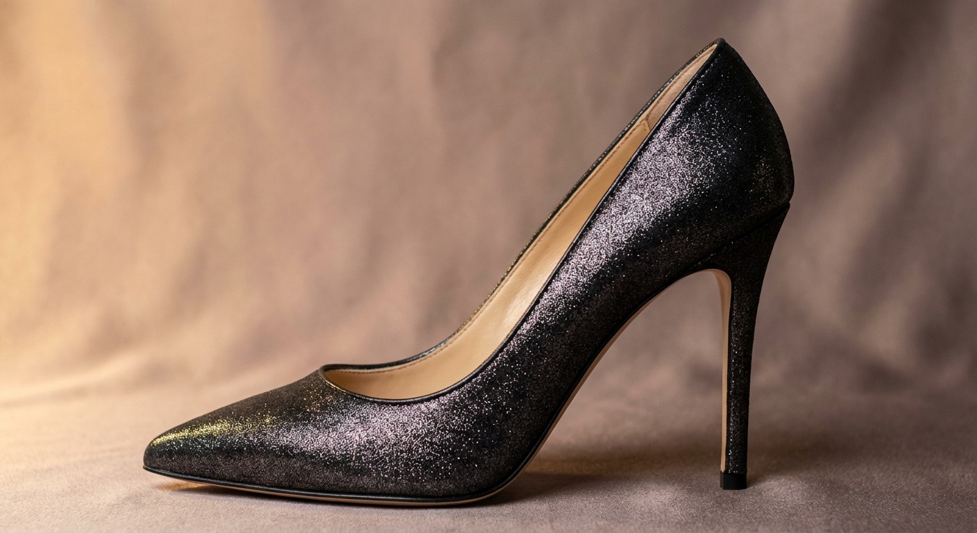 Crafted Leather Classic Women Black Glitter High Fashion Shiny Sparkling Modern Style Dress Shoes