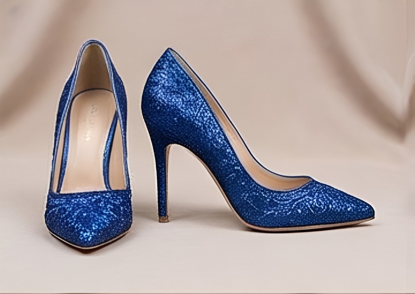 Crafted Leather Classic Women Blue Glitter High Fashion Shiny Sparkling Modern Style Dress Shoes
