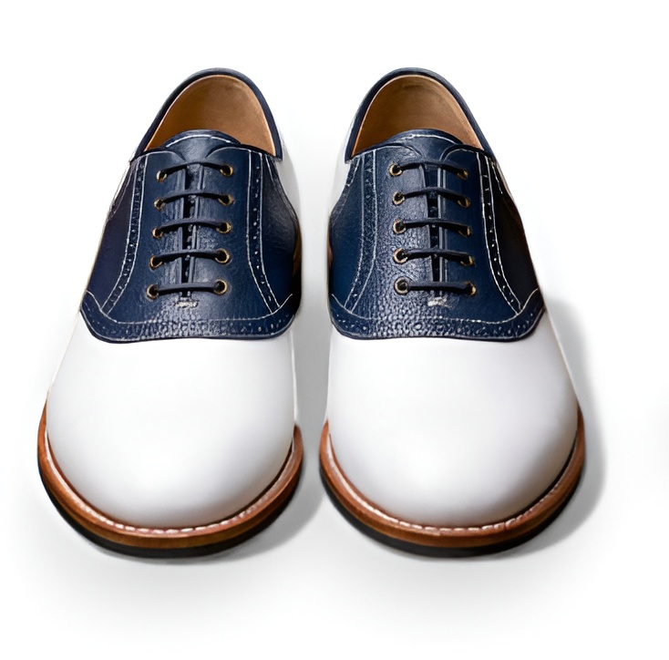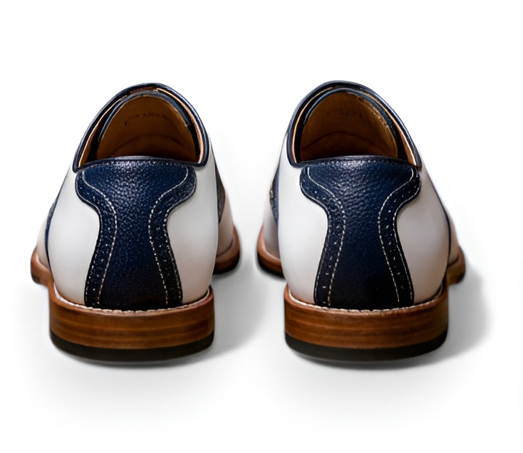 Crafted Leather Men’s Handcrafted White Blue Leather Lace up Saddle Golf Shoes
