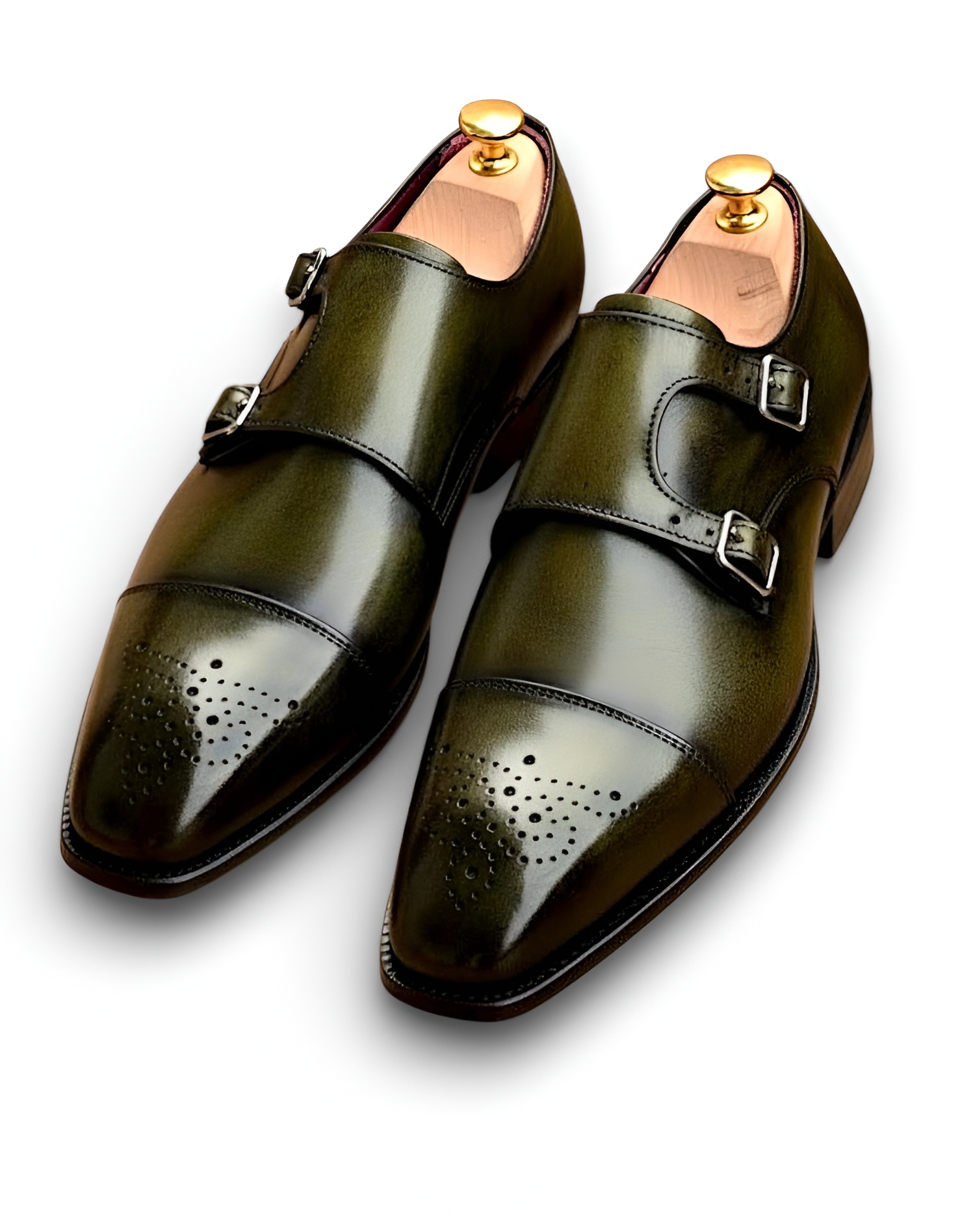 Crafted Leather Clasic Handmade Men Green Leather Monk Strap Dress Shoes