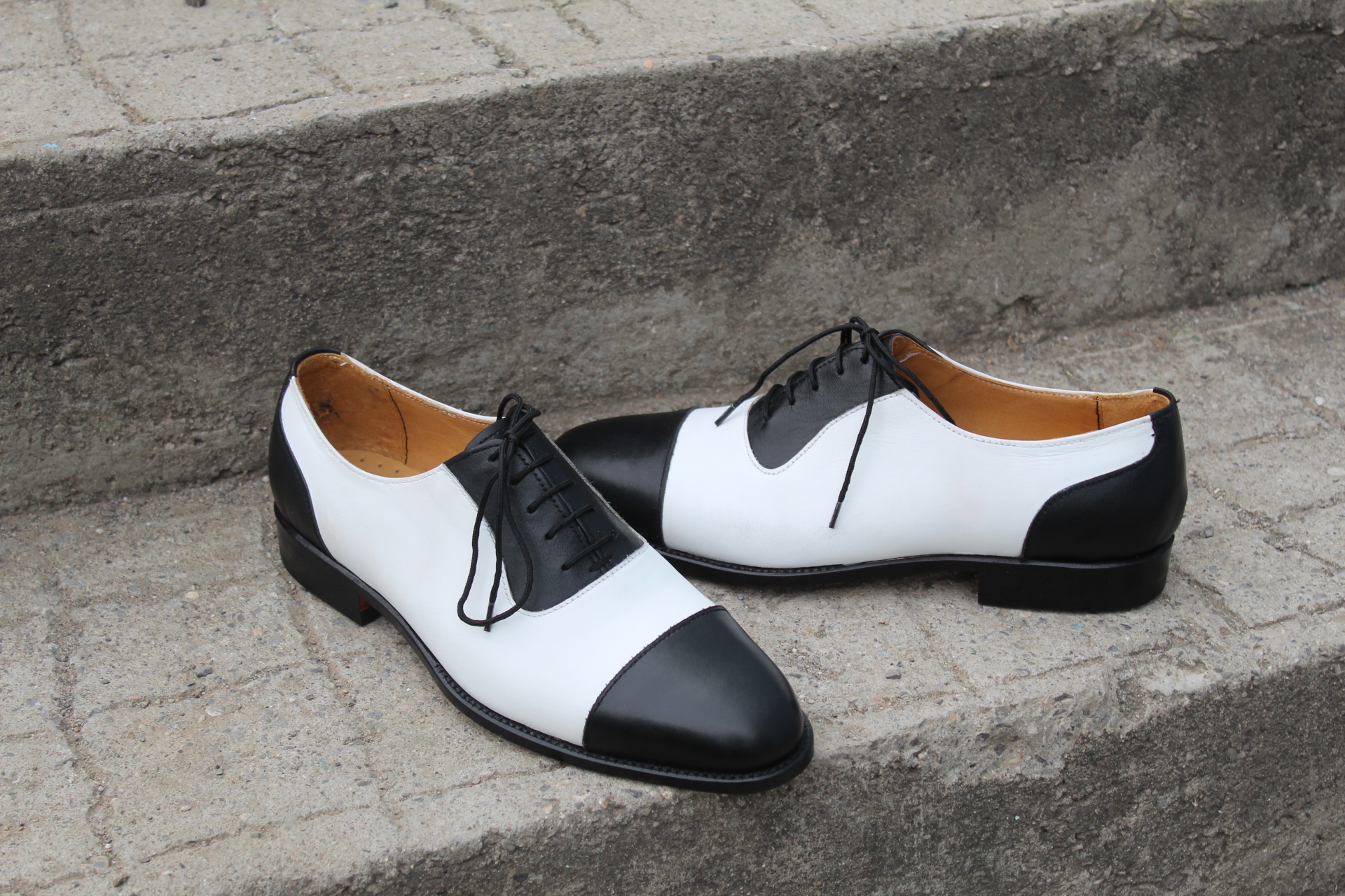 Crafted Leather Classic Handmade Mens Black White Luxury Oxford Dress Shoes