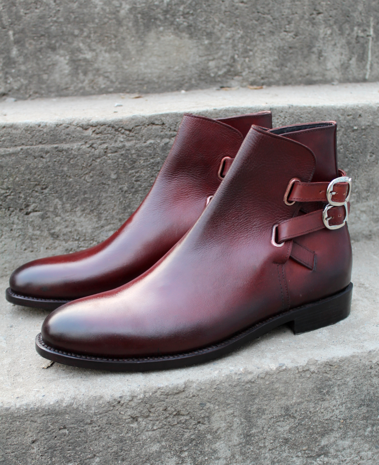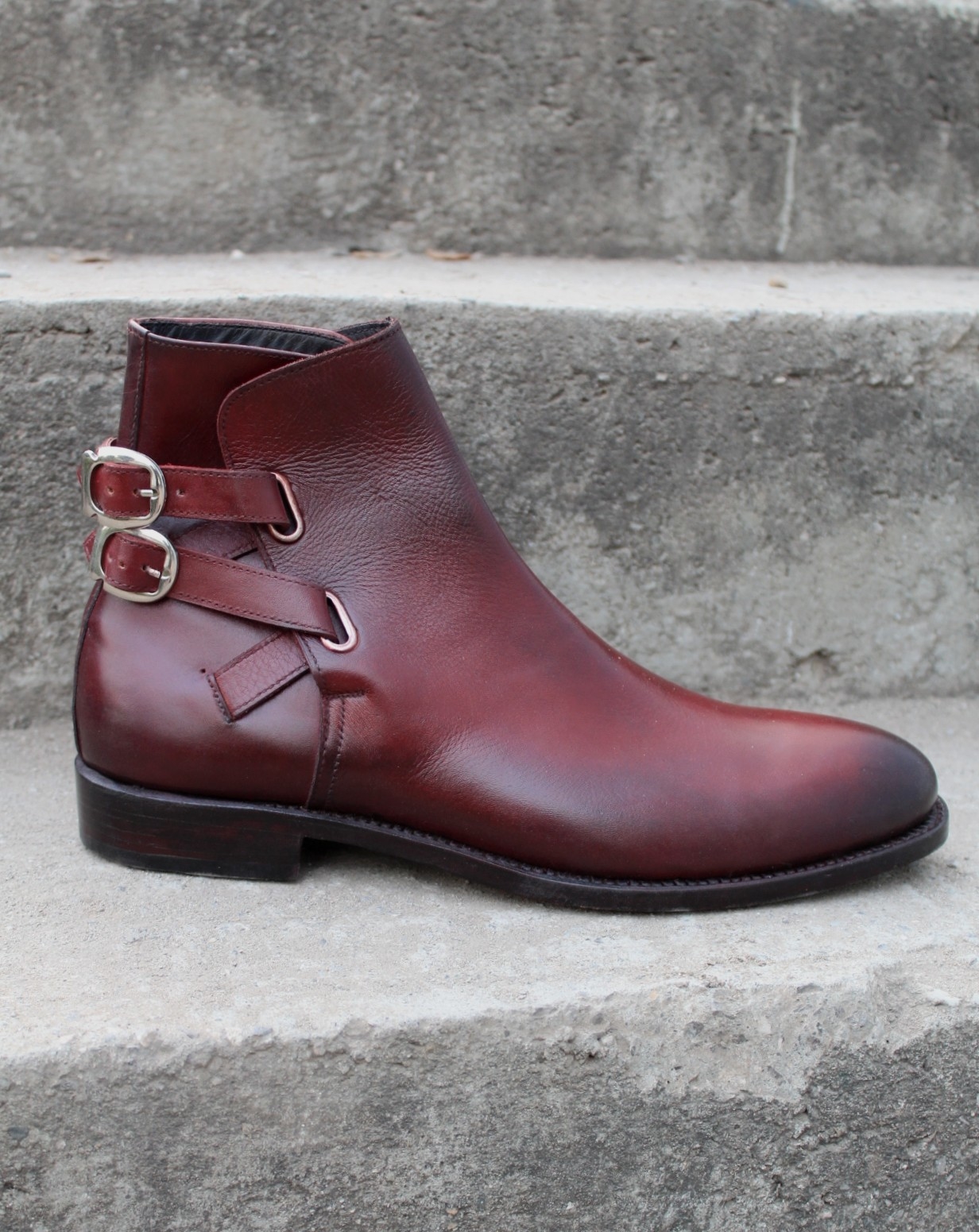 Burgundy Patina Genuine Premium Leather Mens Handcrafted High Ankle Jodhpur Boots