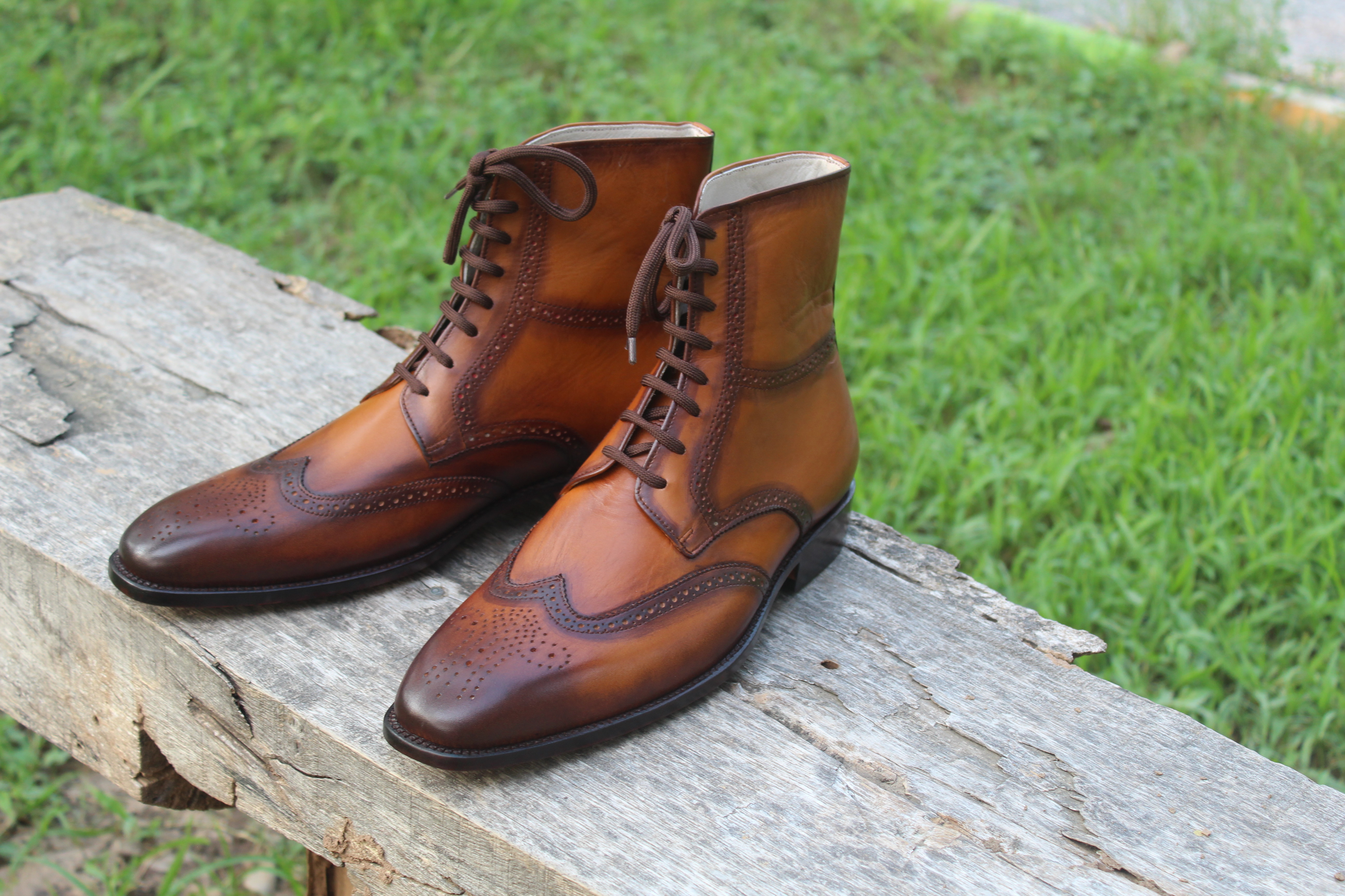 Crafted Leather Mens Brown Leather Ankle High Wingtip Lace up Boot