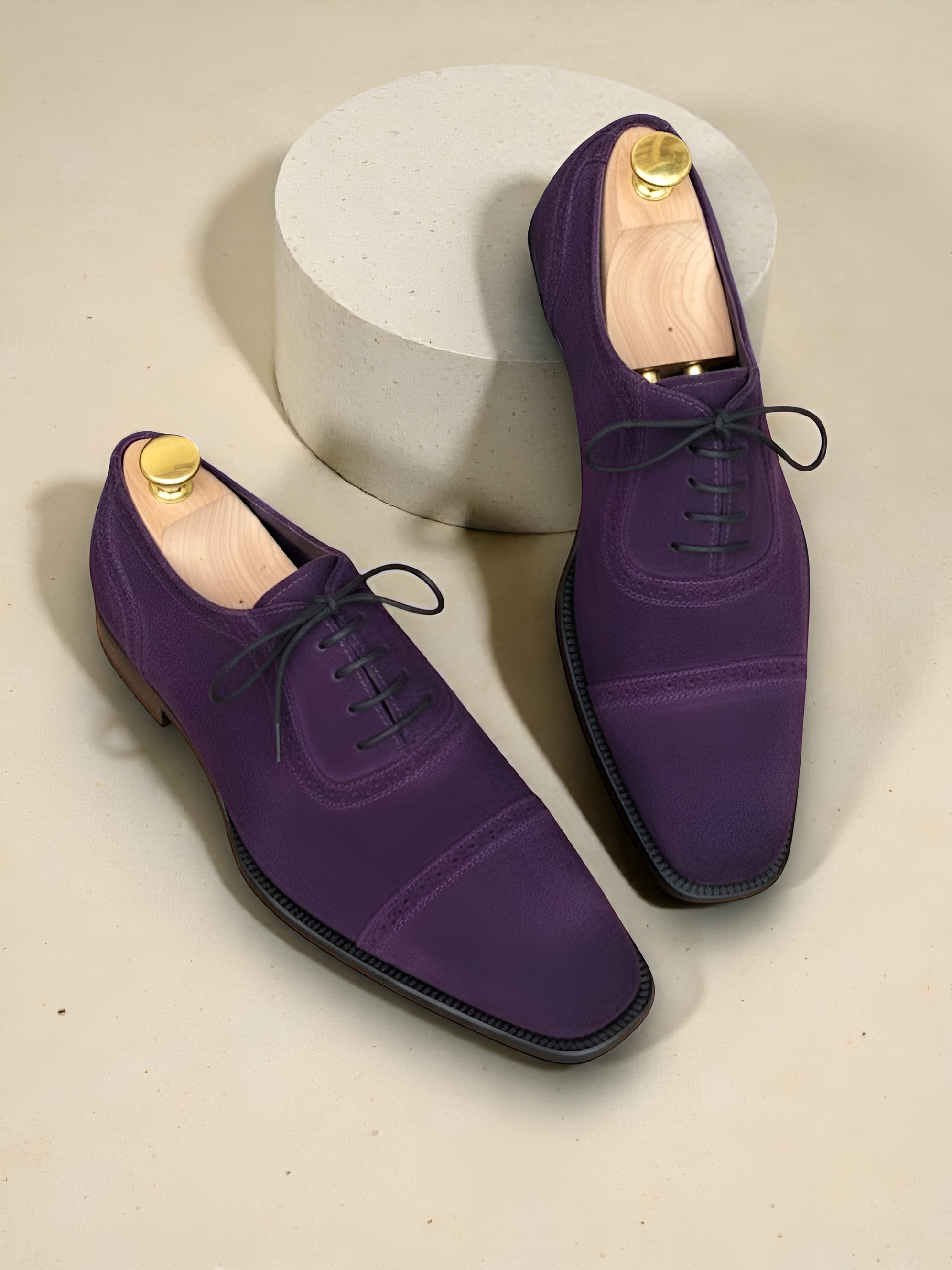 Crafted Leather Handmade Mens Purple Suede Leather Oxford Dress Shoes