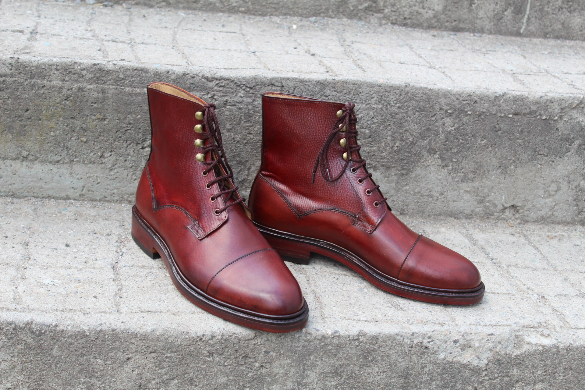 Crafted Leather Classic Burgundy Leather Ankle High Lace up Boot