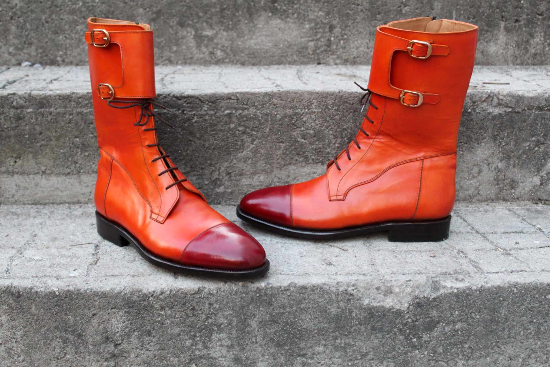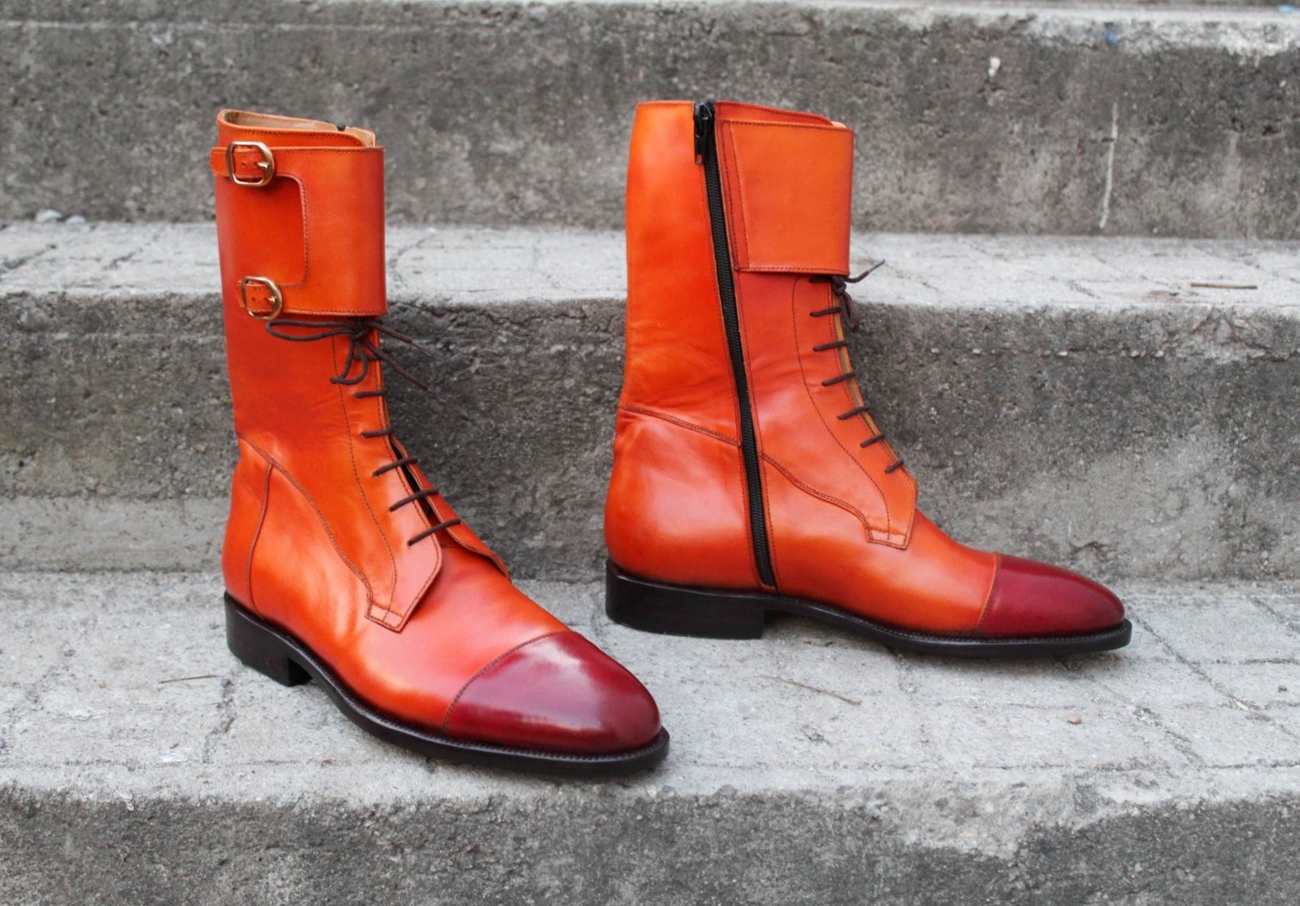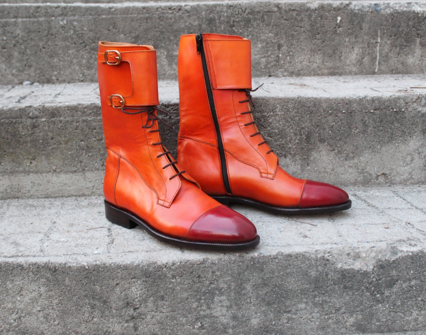 Inner: Soft Leather Sole: Leather Gender : Male Heel: Leather Color: Tan Brown Style: Ankle High Buckle Boot Lining Soft Calf Leather Lining Totally Hand stitched Manufacturing time 7-10 business days If you can’t find your Size/Color just send us message we will make for you.