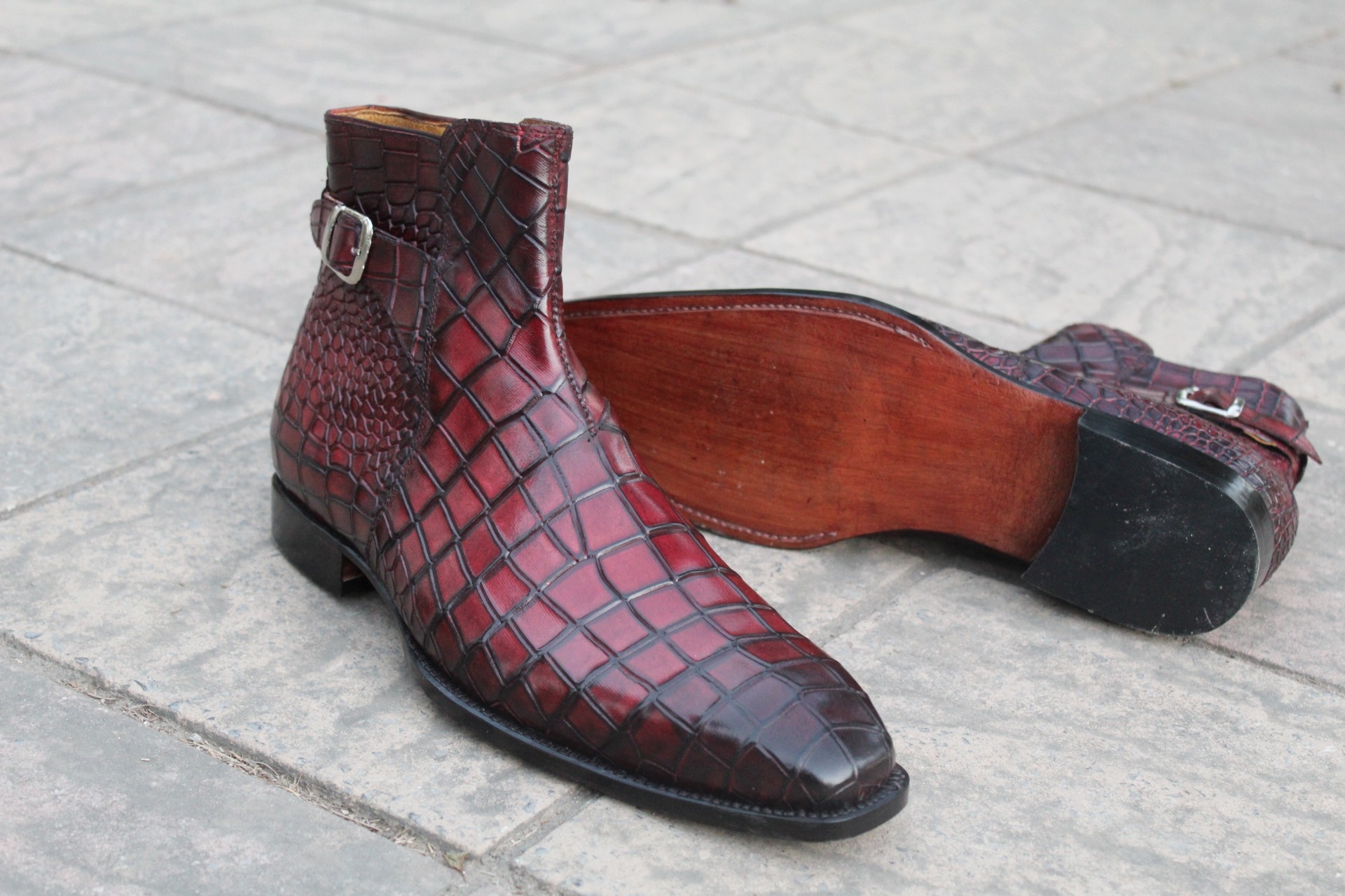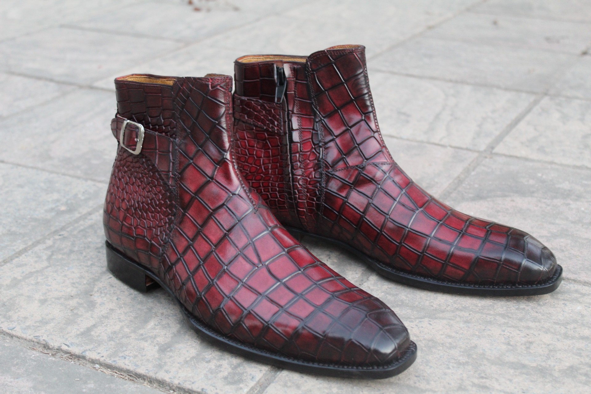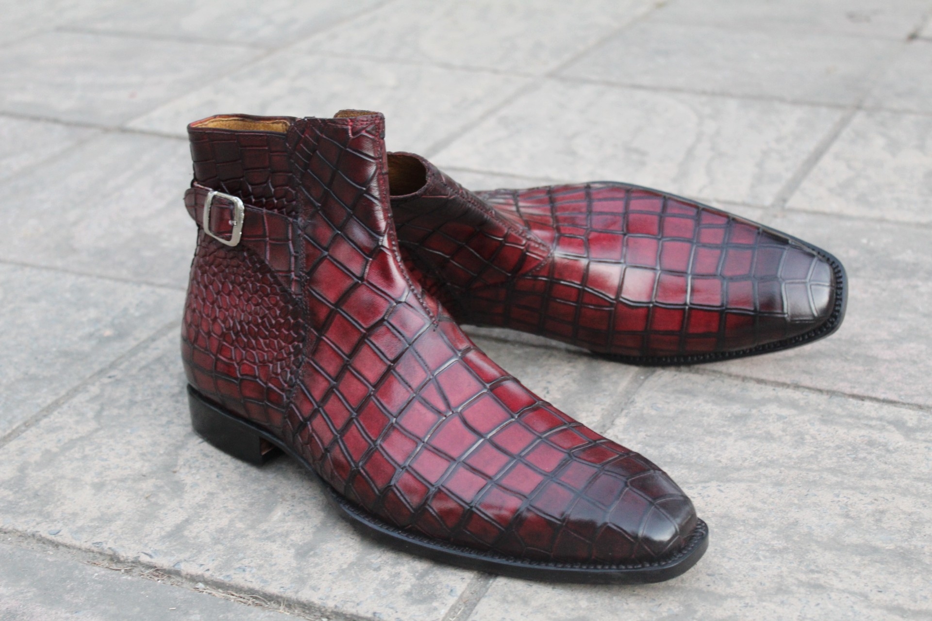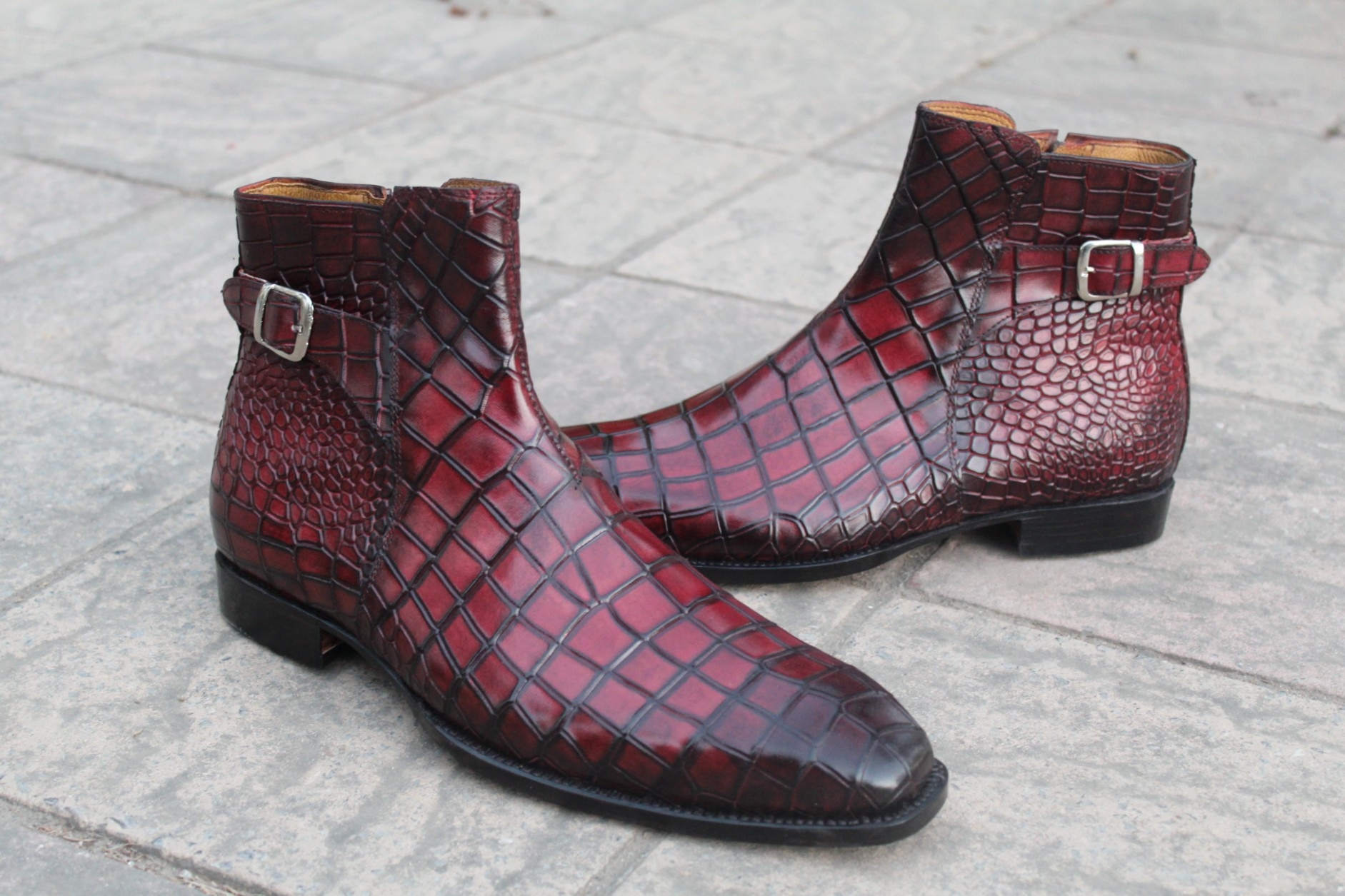 Crafted Leather Classic Burgundy Crocodile/Alligator Leather Mens Fashion Jodhpur Boot