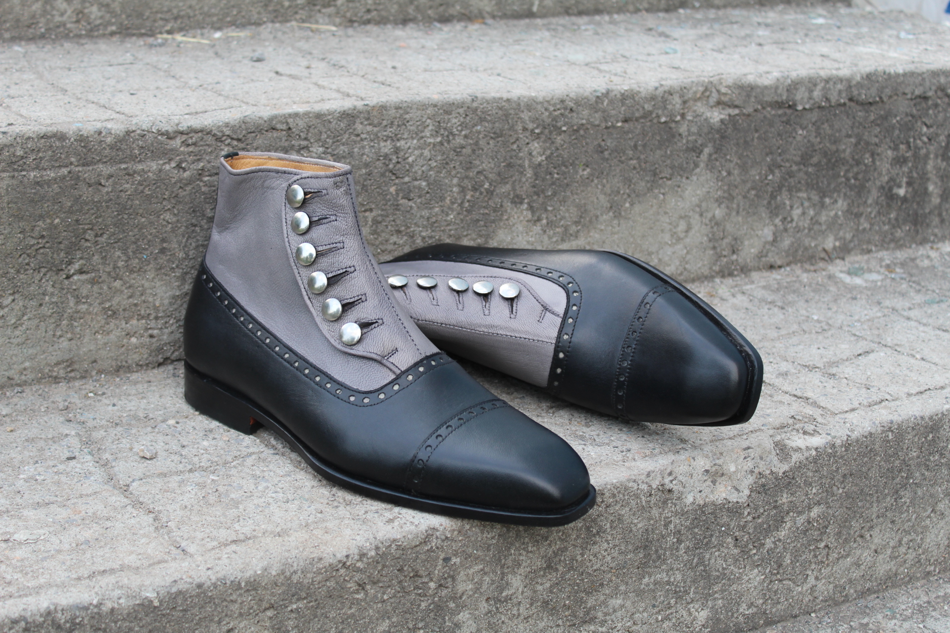 Crafted Leather Handmade Mens Ankle High Simple and Effcient! Buttons Balmoral Dress Boot in a Black/Grey Combo.