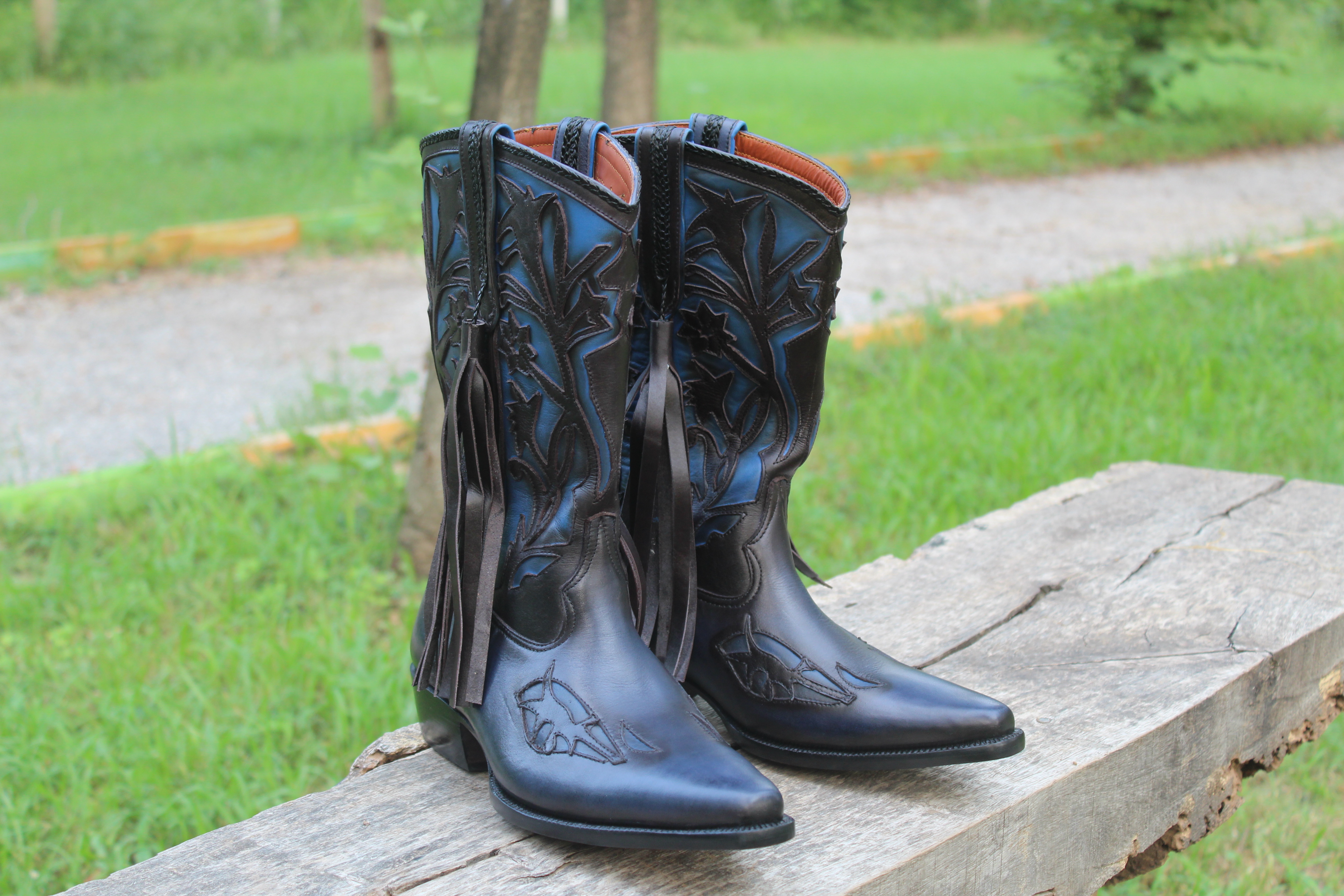 Crafted Leather New Classic Fringes Design Ankle Cowboy Boot