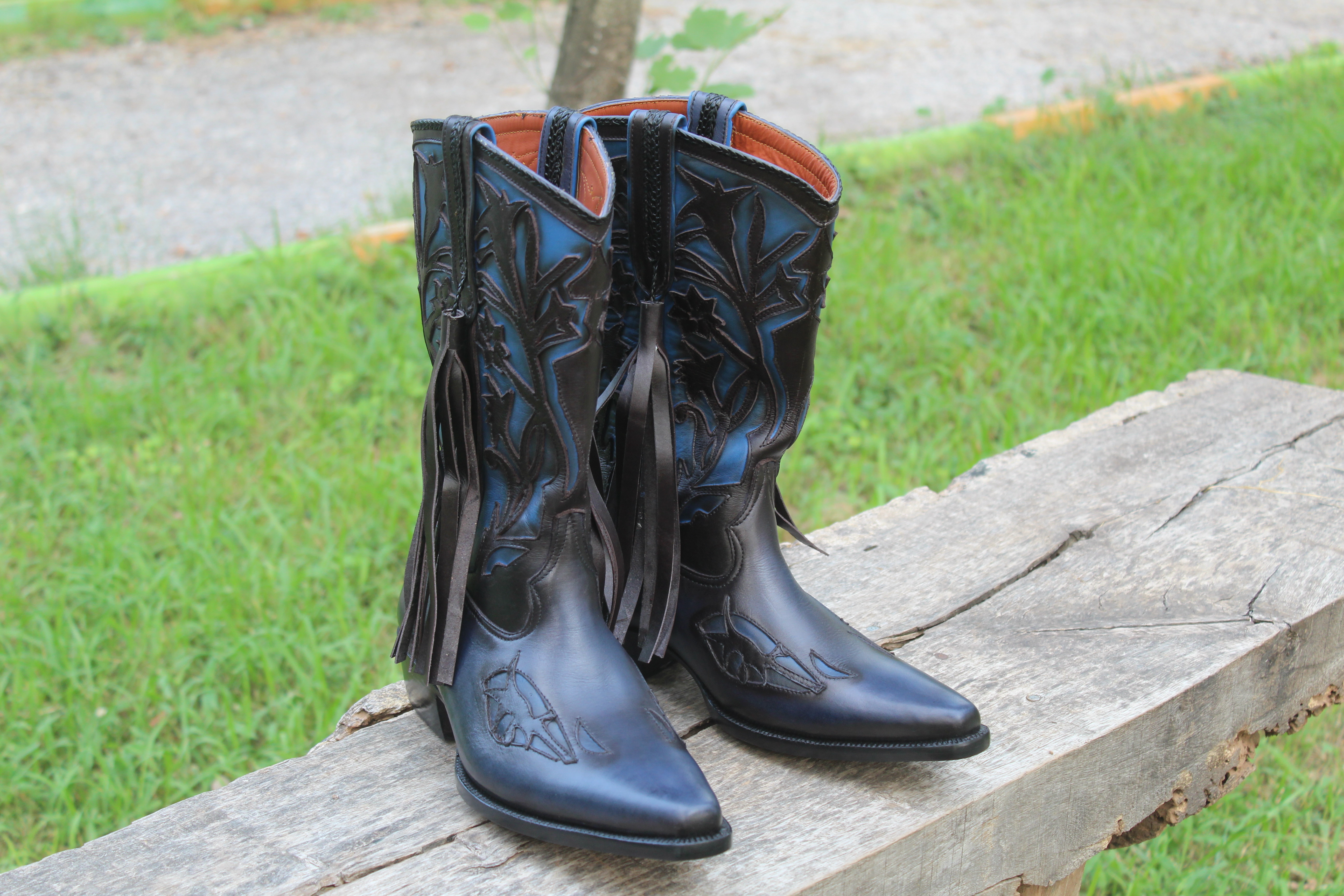 Inner: Soft Leather Sole: Leather Gender : Male Heel: Leather Color: Blue Style: Cowboy Boot Totally Hand stitched Manufacturing time 7-10 business days If you can’t find your Size/Colorjust send us message we will make for you.