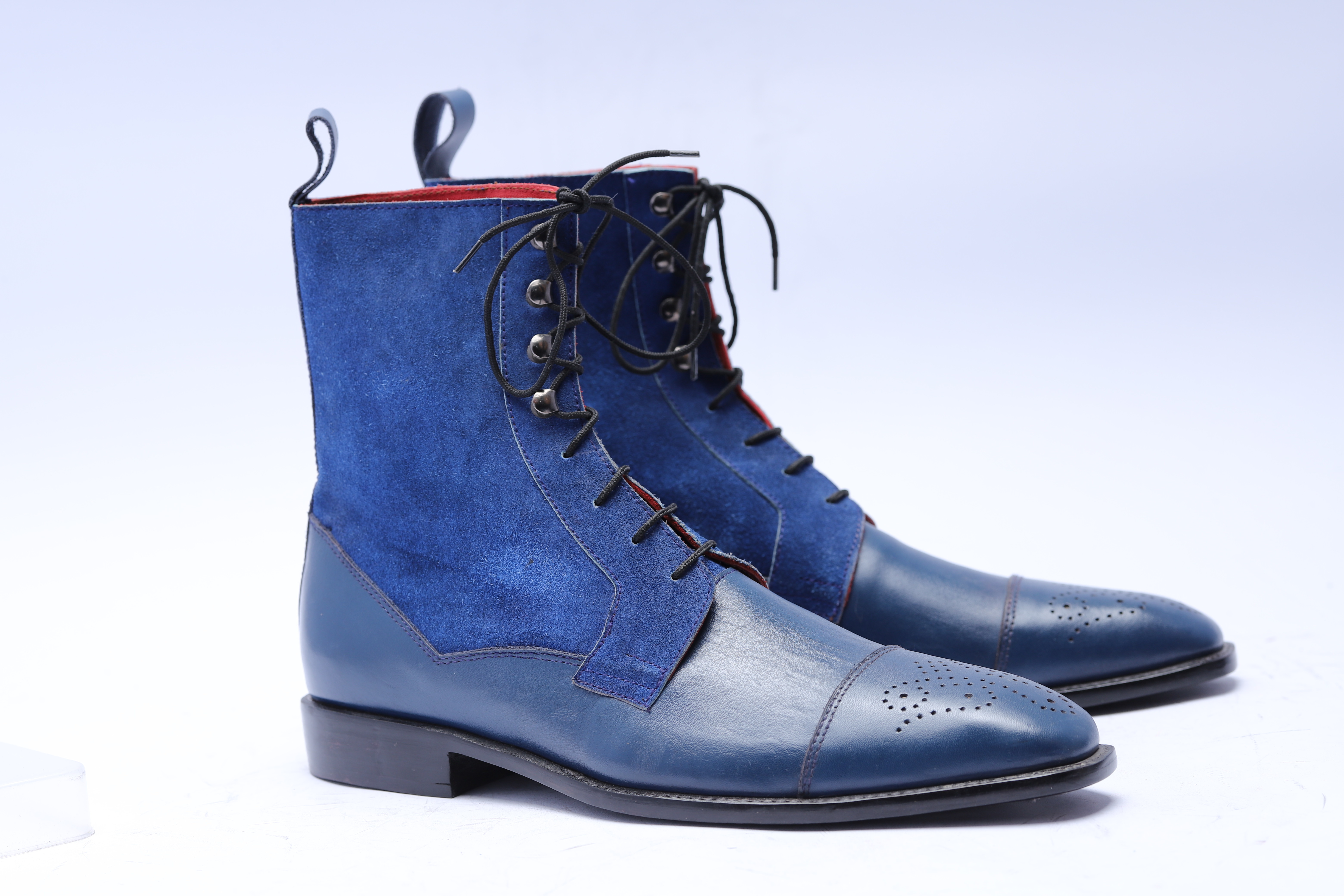 Inner: Soft Leather Sole: Leather Gender : Male Heel: Leather Color: Blue Style: Ankle High Boot Totally Hand stitched Manufacturing time 7-10 business days If you can’t find your Size/Color just send us message we will make for you.