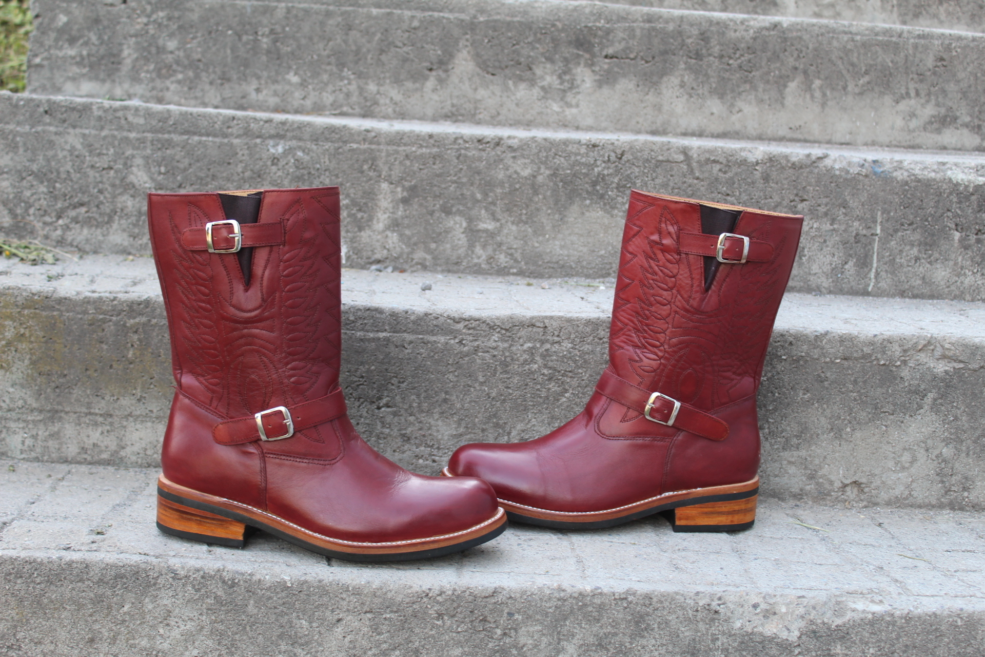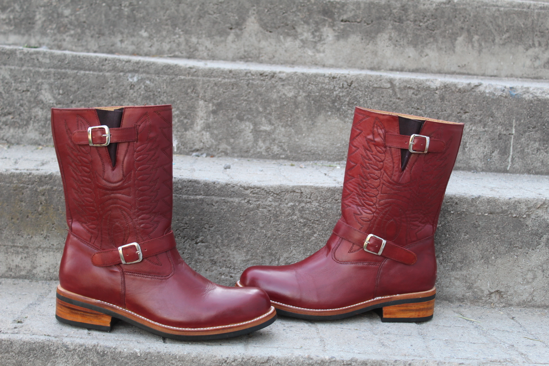 Crafted Leather Classic Handmade Burgundy Leather Ankle High Strap Cowboy Boot