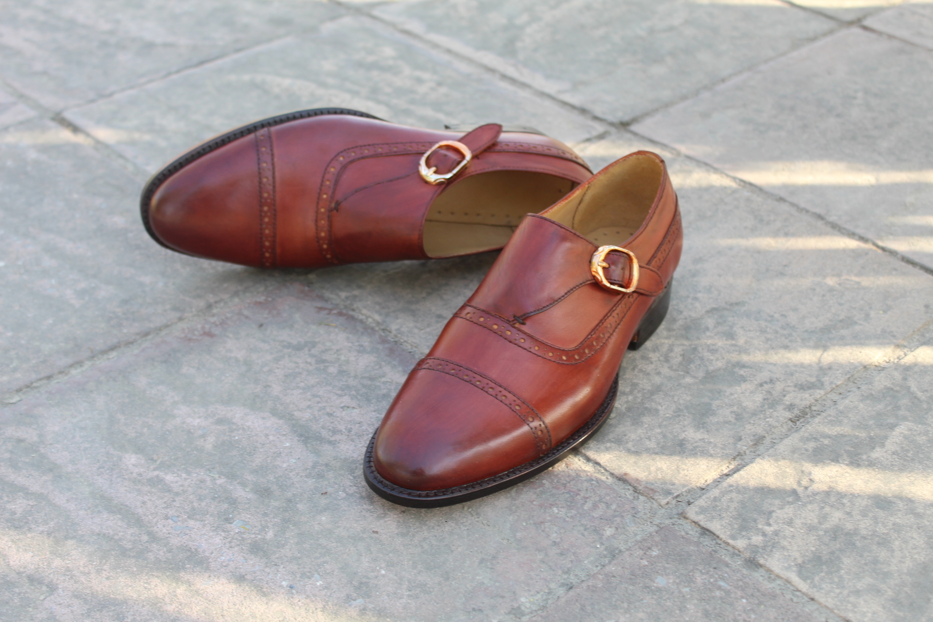 Crafted Leather Single Buckle Monk Strap Handmade Shoes