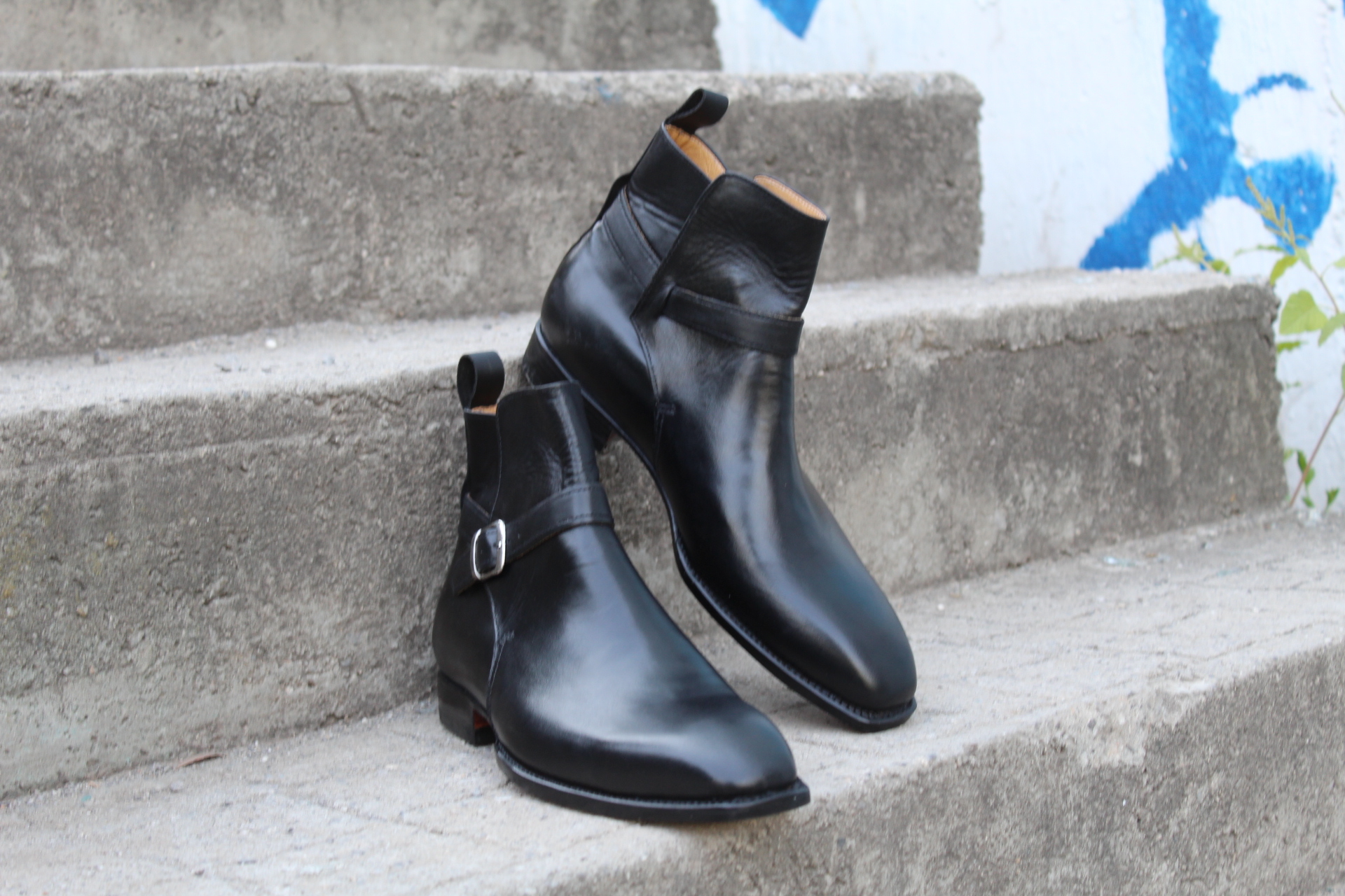 Crafted Leather Handmade Black Buckle Strap Jodhpur Ankle High Boot