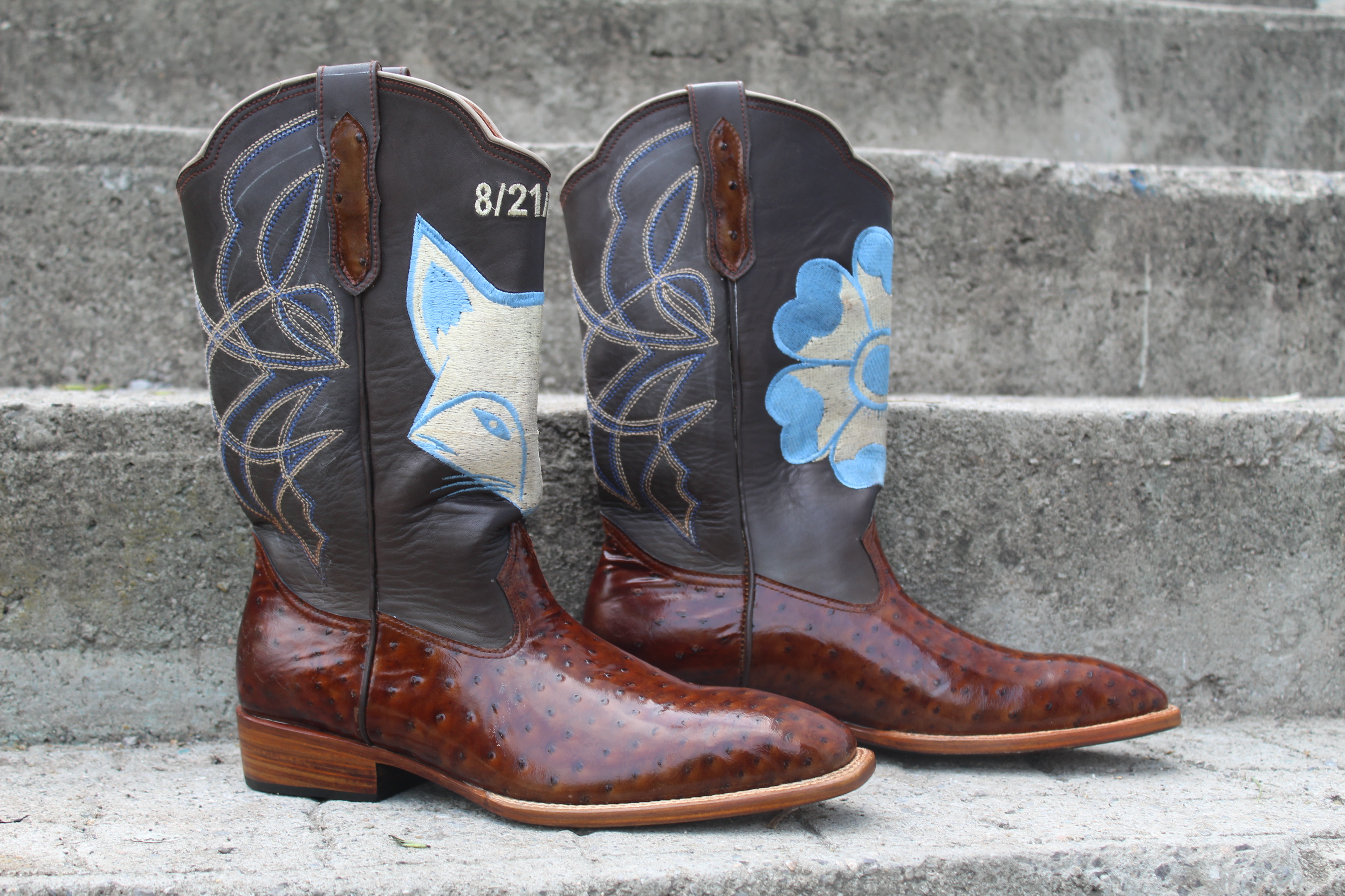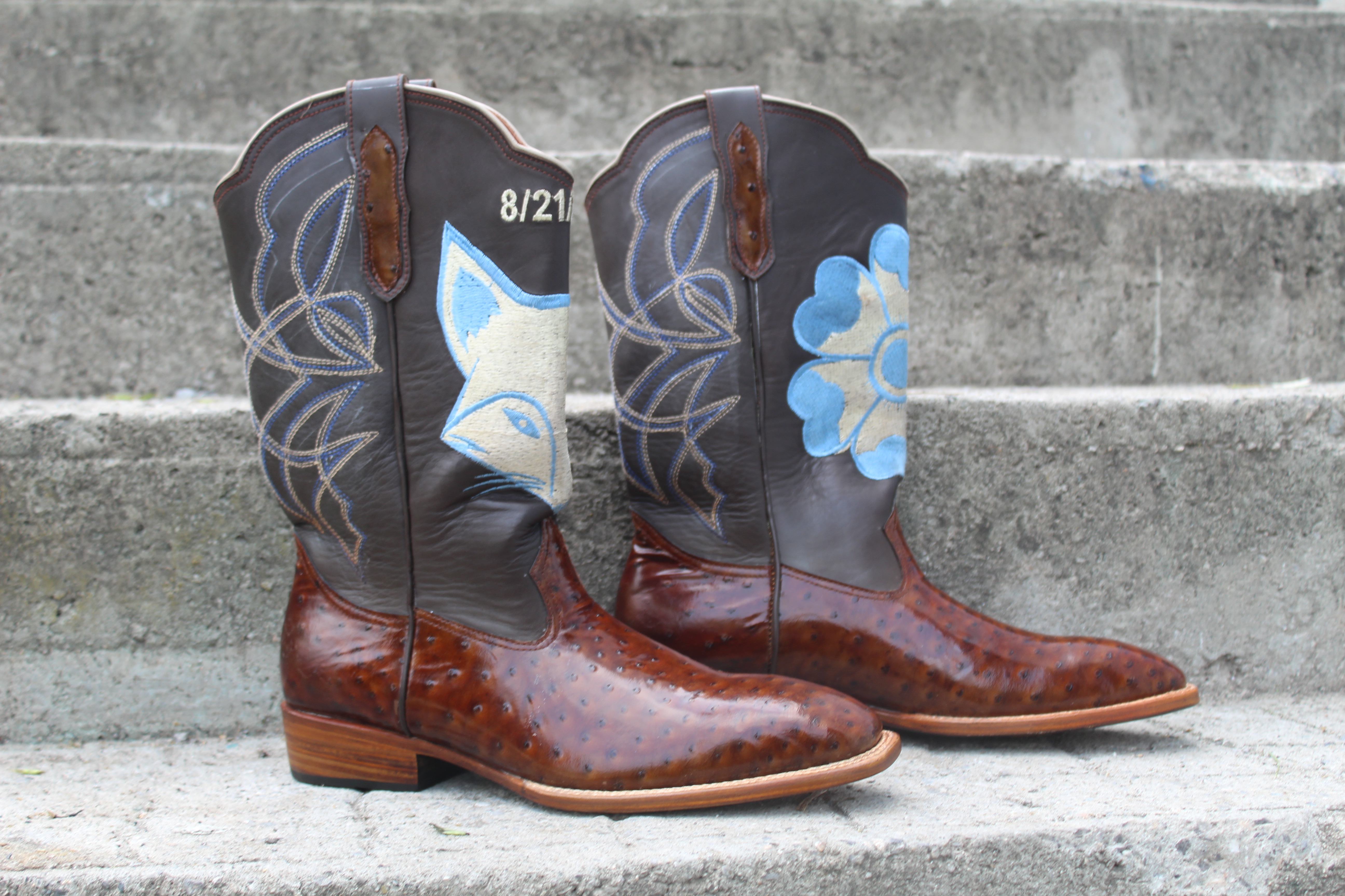 Crafted Leather Handmade Classic Men's Fashion Brown Ostrich Leather Leather Cowboy Boots