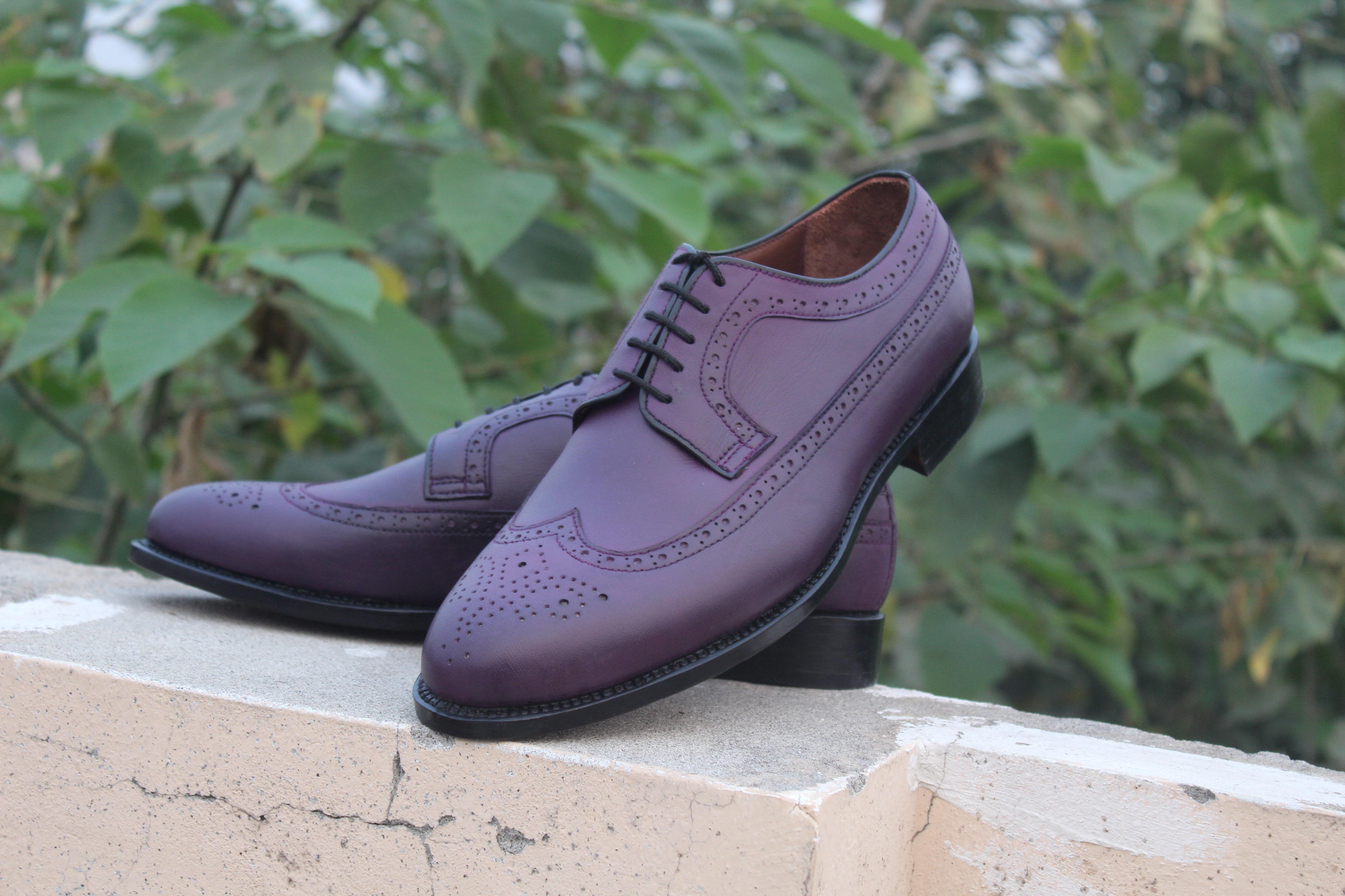 Crafted Leather Classic Purple Leather Wingtip Oxford Dress Shoes