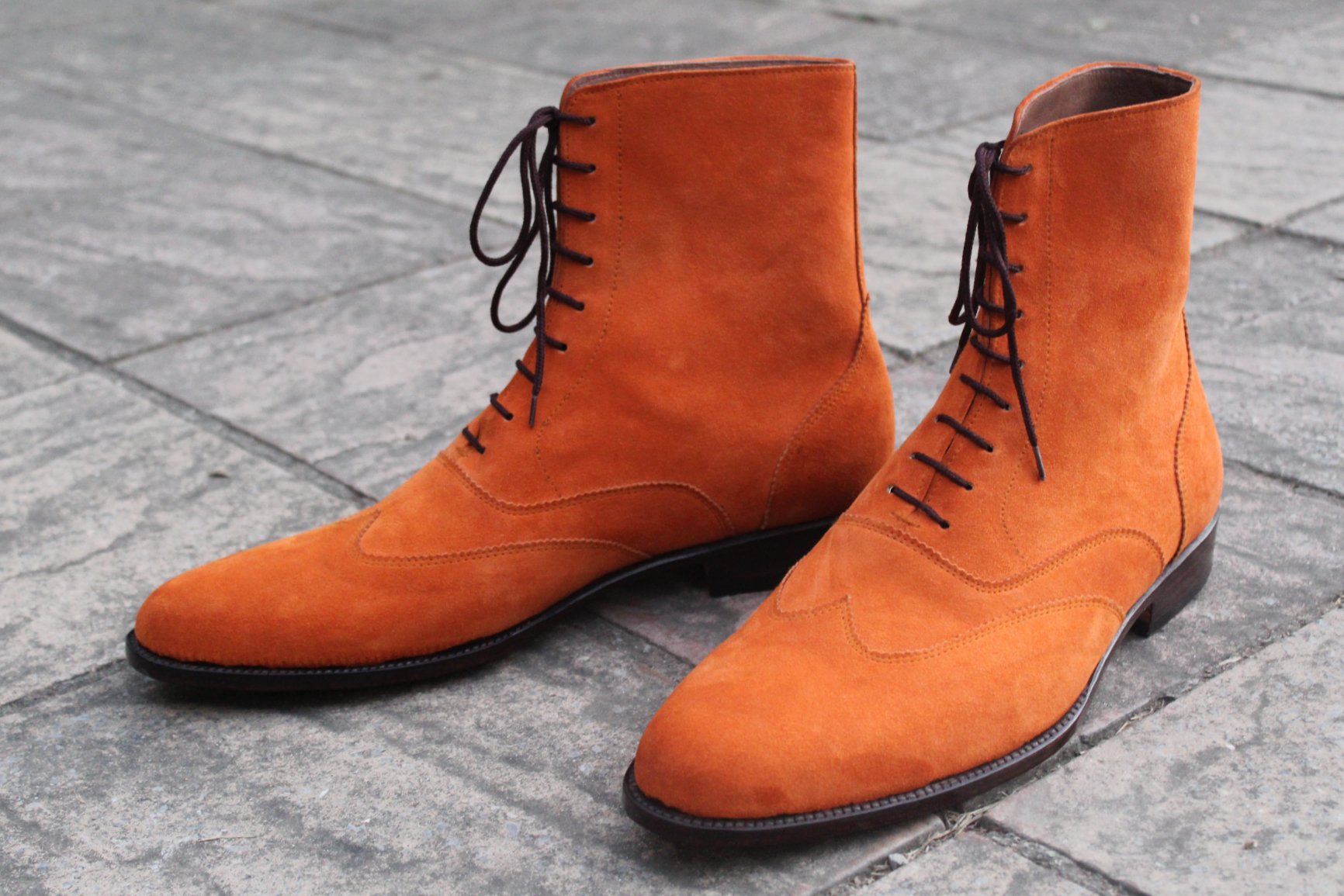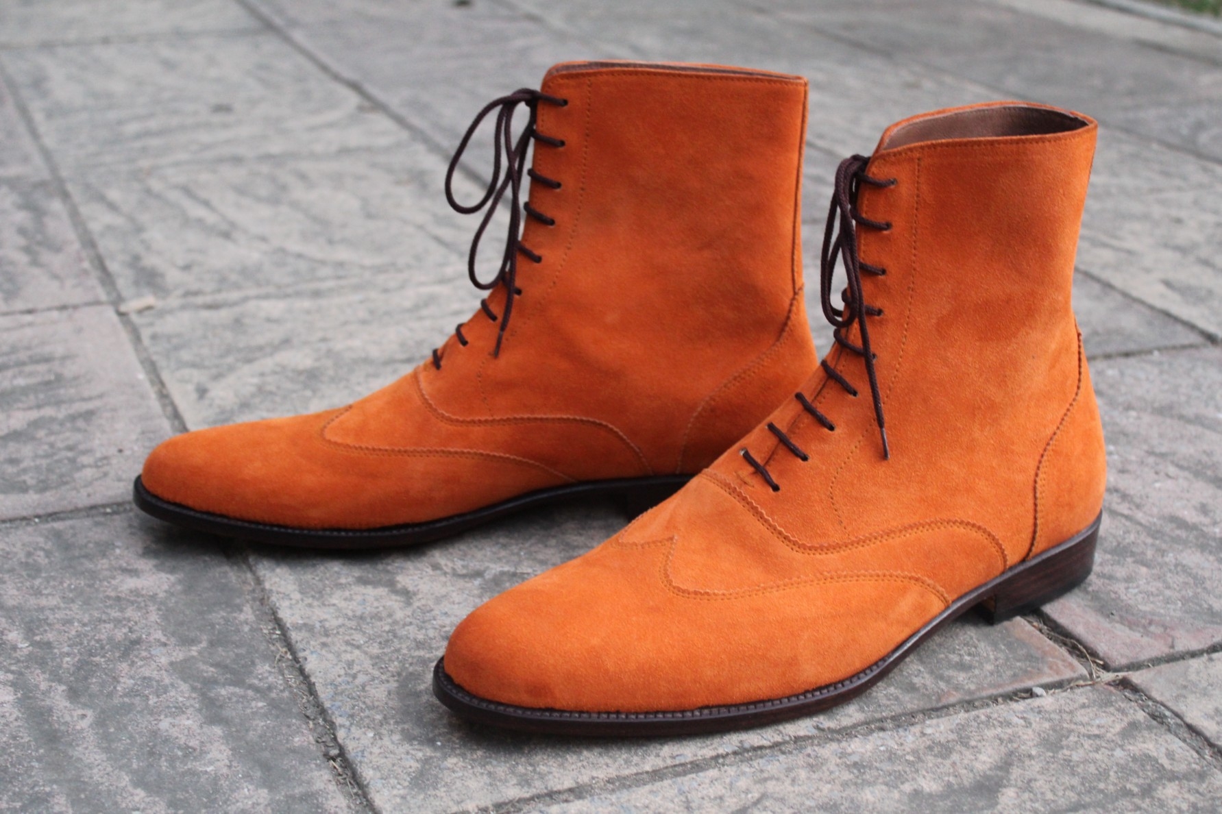 Crafted Leather Classic Tan Suede Leather Ankle High Lace up Wingtip Dress Boot