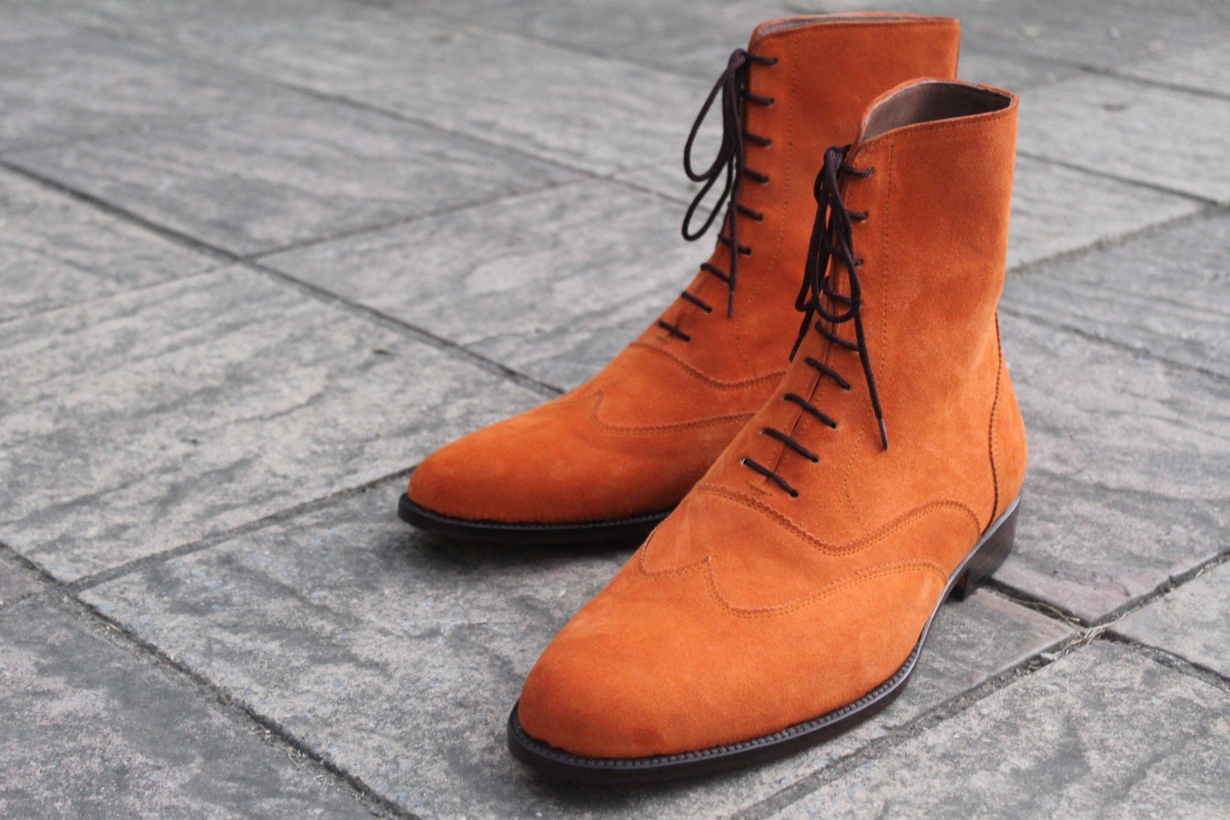 Inner: Soft Leather Sole: Leather Gender : Male Heel: Leather Color: Tan Style: Ankle High Wingtip Boot Lining Soft Calf Leather Lining Totally Hand stitched Manufacturing time 7-10 business days If you can’t find your Size/Colorjust send us message we will make for you.