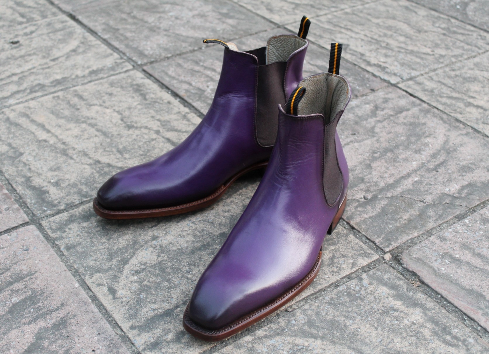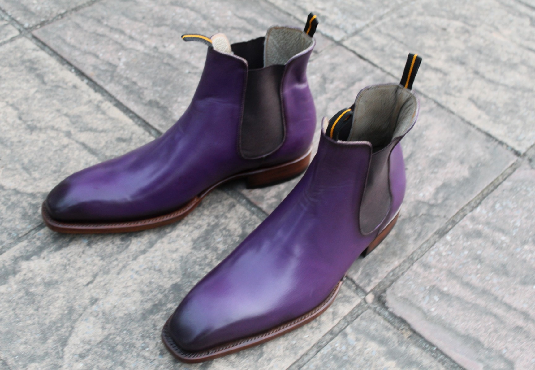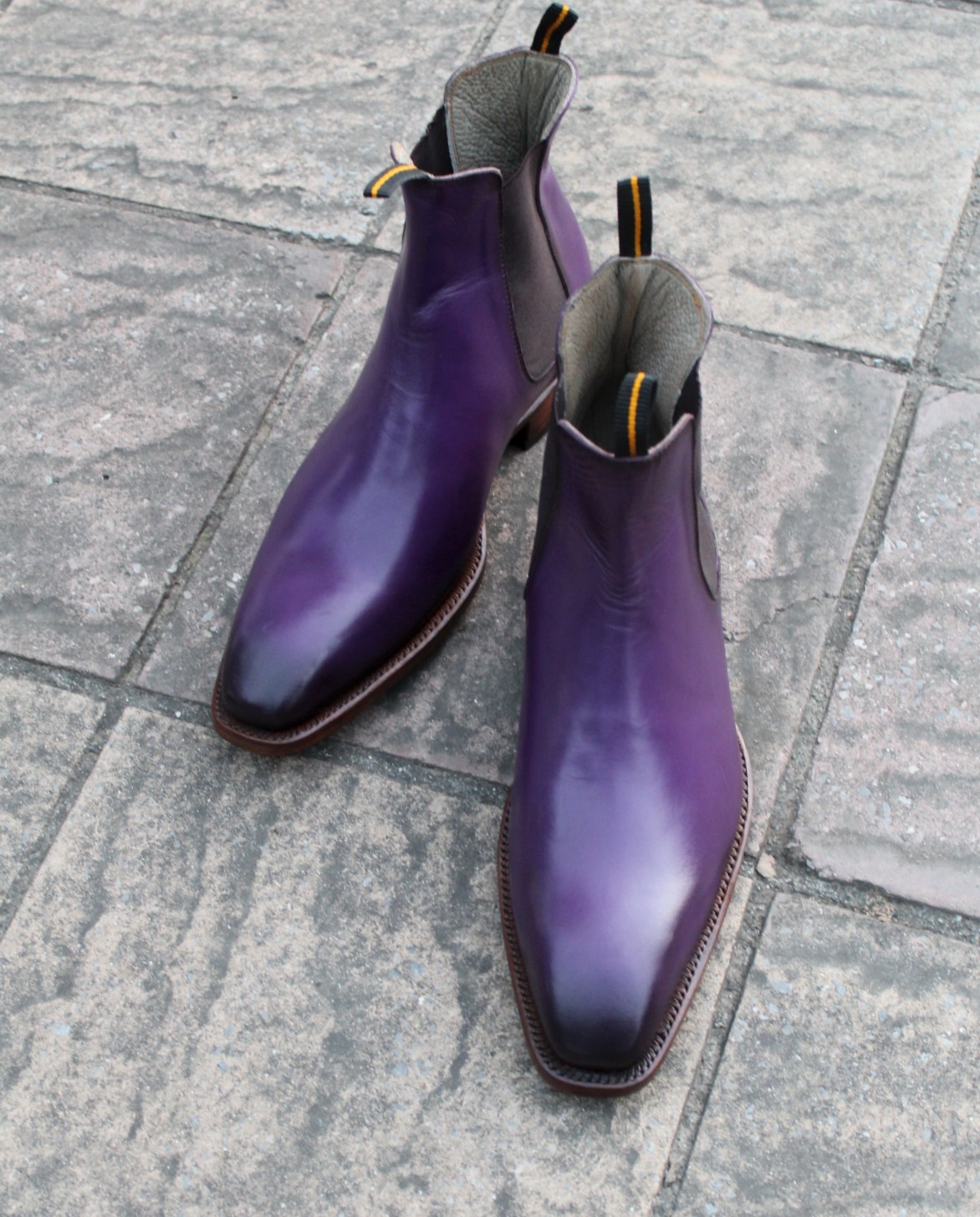 Inner: Soft Leather Sole: Leather Gender : Male Heel: Leather Color: Purple Style: Chelsea Boot Lining Soft Calf Leather Lining Totally Hand stitched Manufacturing time 7-10 business days If you can’t find your Size/Colorjust send us message we will make for you.