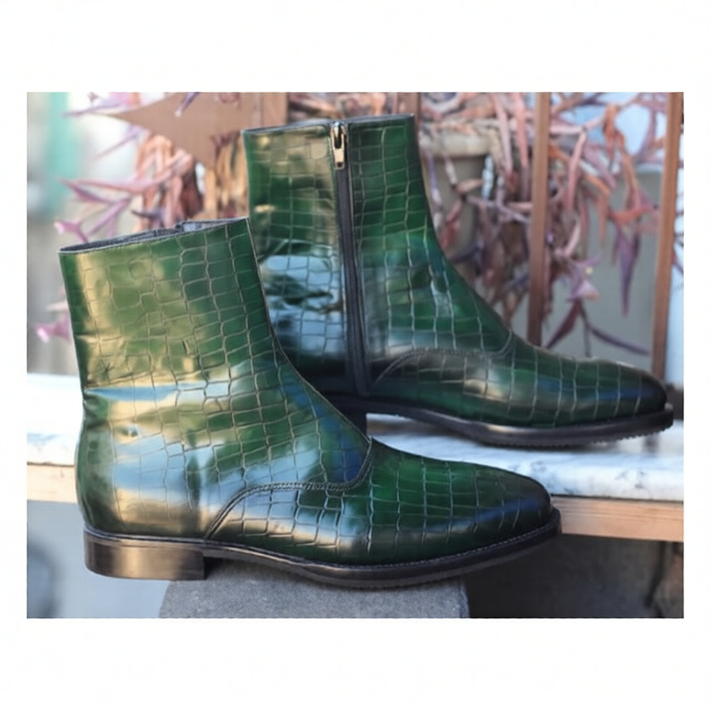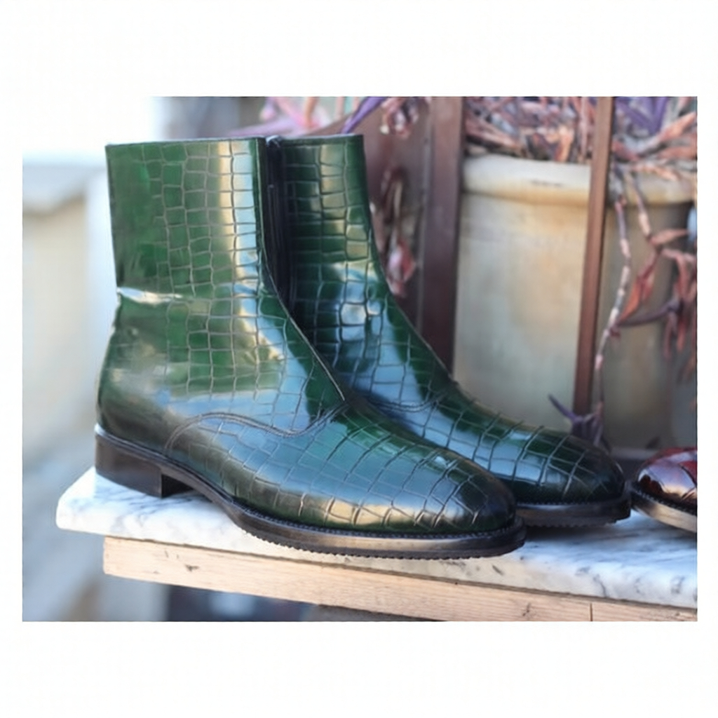 Crafted Leather Classic Green Patina Crocodile Leather Jodhpur Dress Boot