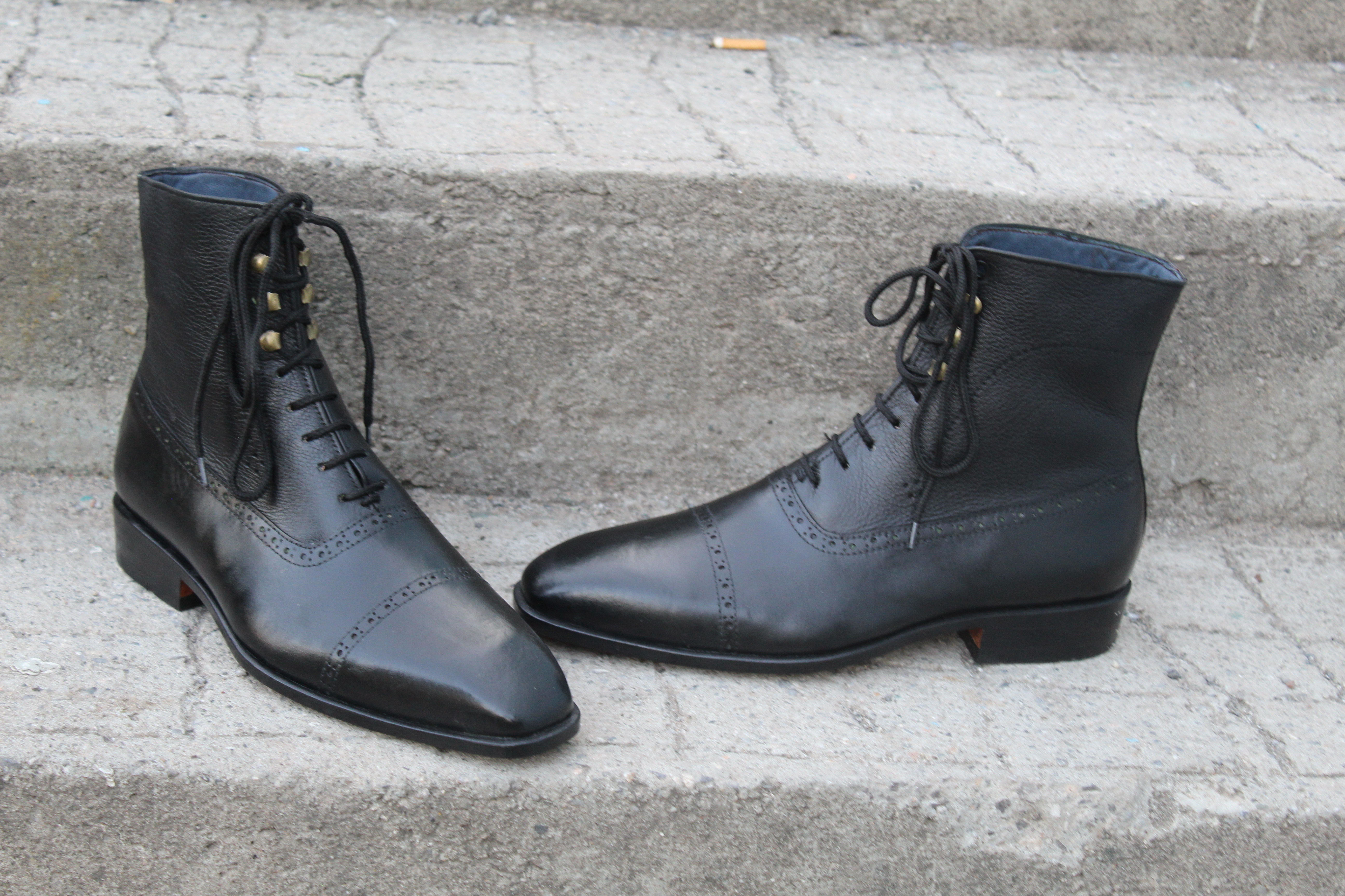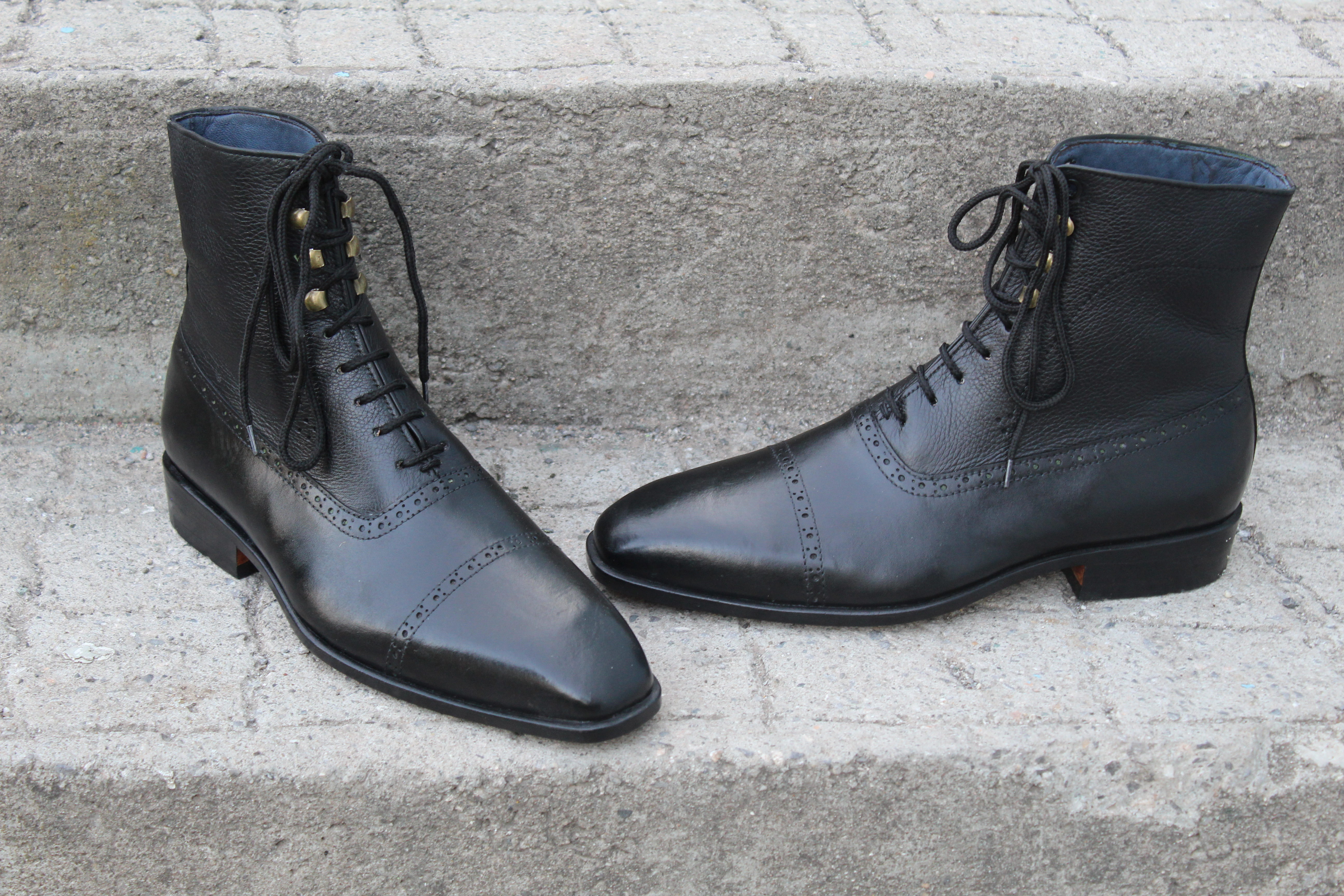 Crafted Leather Men's Handmade Black Leather Ankle High Stylish Boot, Men's Genuine Leather Dress Lace Up Formal Wear Boot