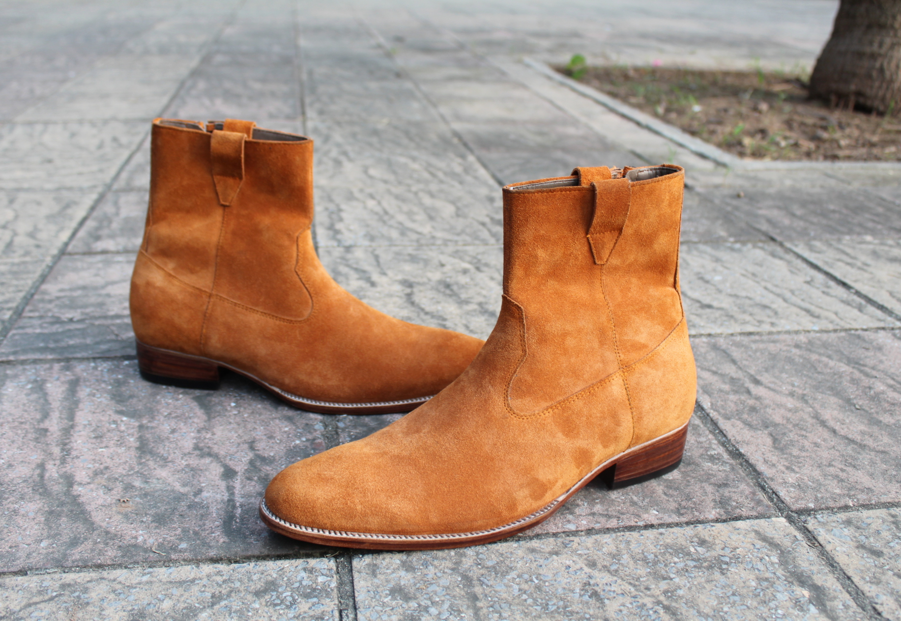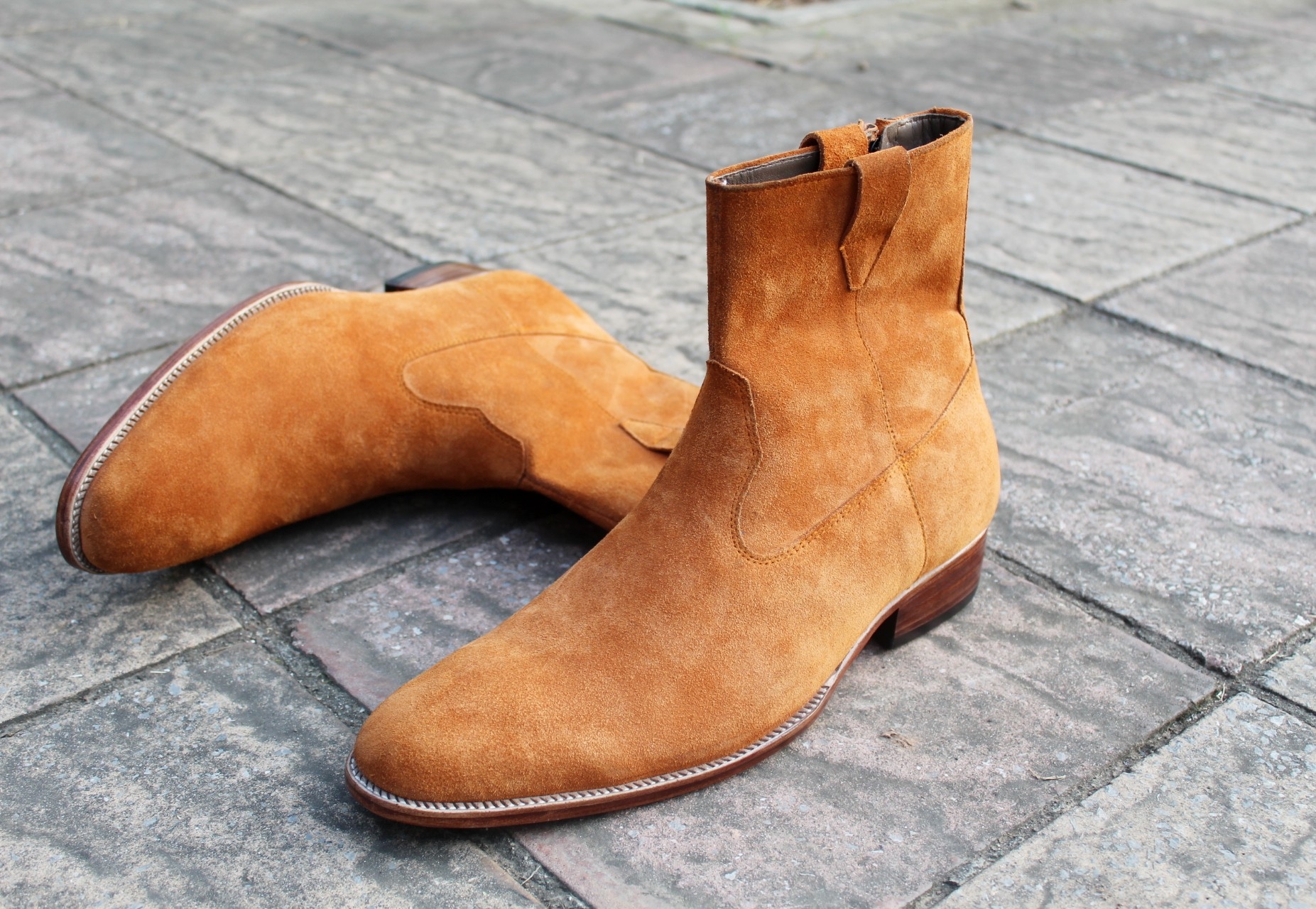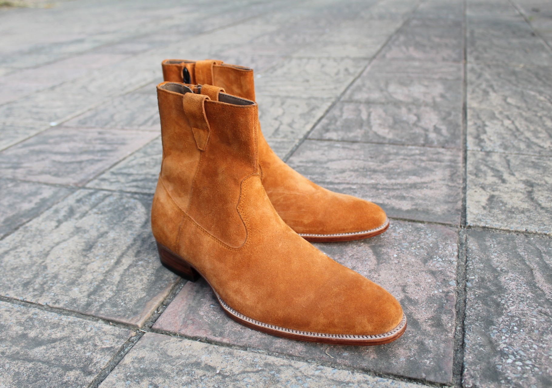 Crafted Leather Classic Handmade Tan Suede Leather Side Zipper Jodhpur Boot