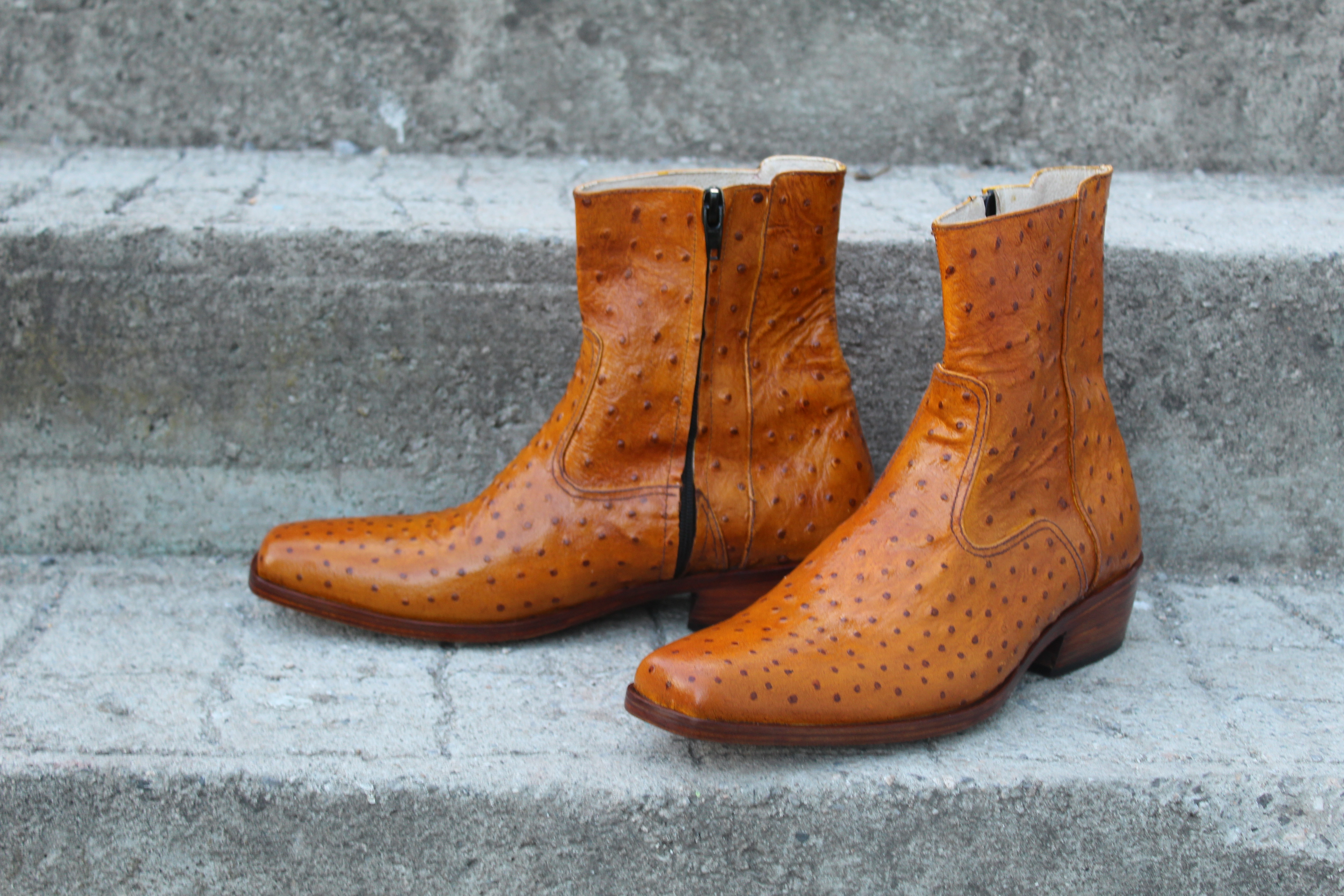 Crafted Leather Classic Brown Ostrich Leather Side Zipper Jodhpur Boot