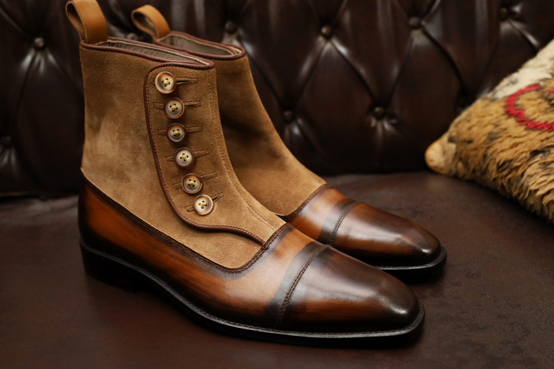 Crafted Leather Classic Two Tone Brown Patina / Suede Men Ankle Dress Boot