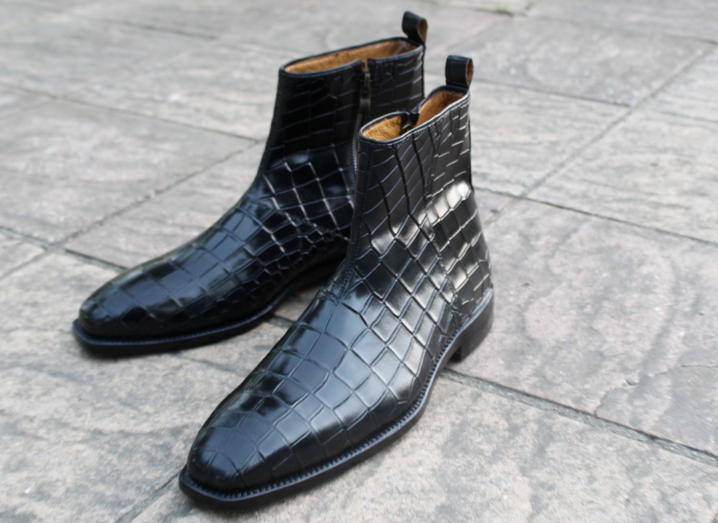 Crafted Leather Classic Black Crocodile/Alligator Leather Side Zipper Ankle Jodhpur Boot