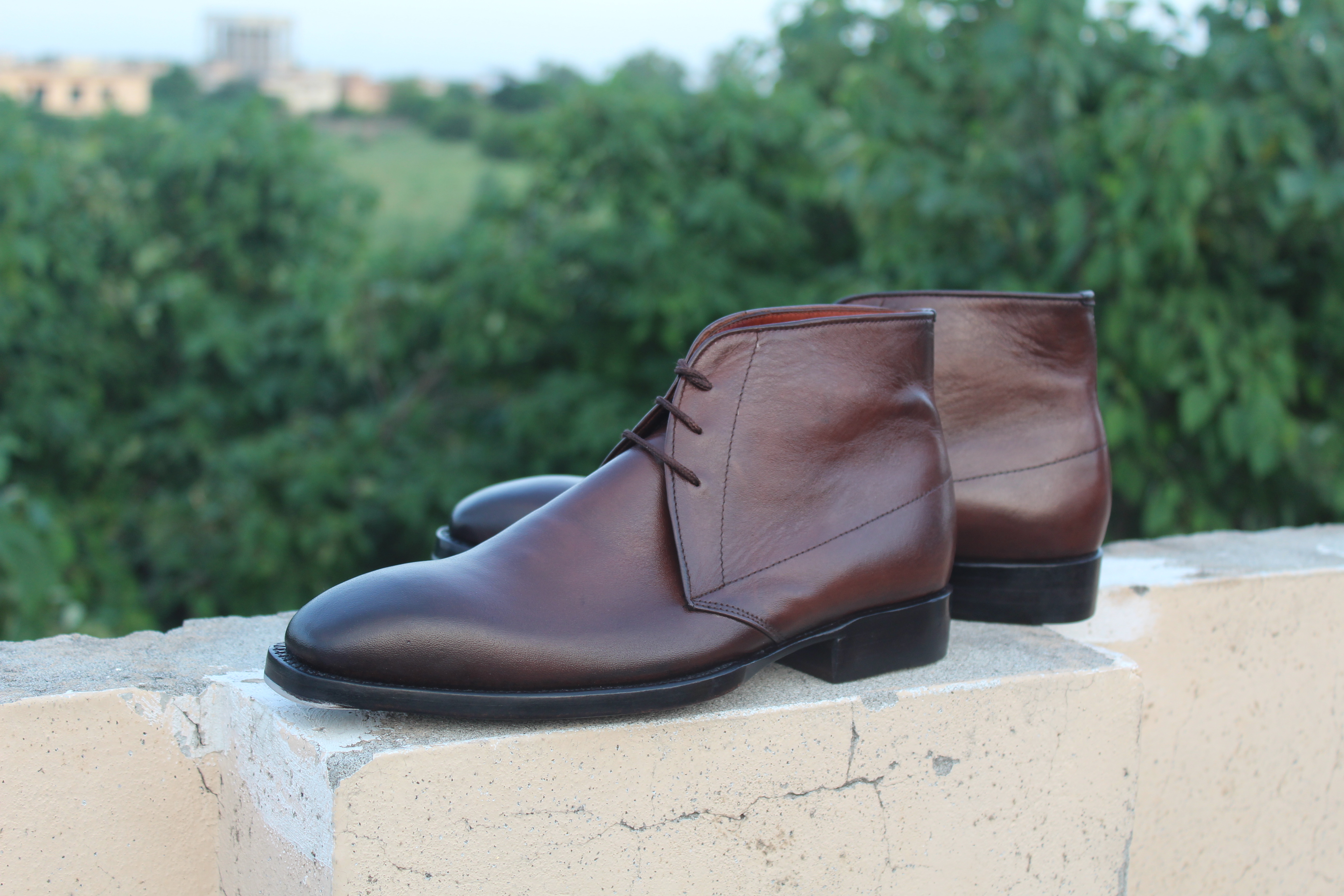 Inner: Soft Leather Sole: Leather Gender : Male Heel: Leather Color: Brown Style: Chukka Boot Lining Soft Calf Leather Lining Totally Hand stitched Manufacturing time 7-10 business days If you can’t find your Size/Colorjust send us message we will make for you.