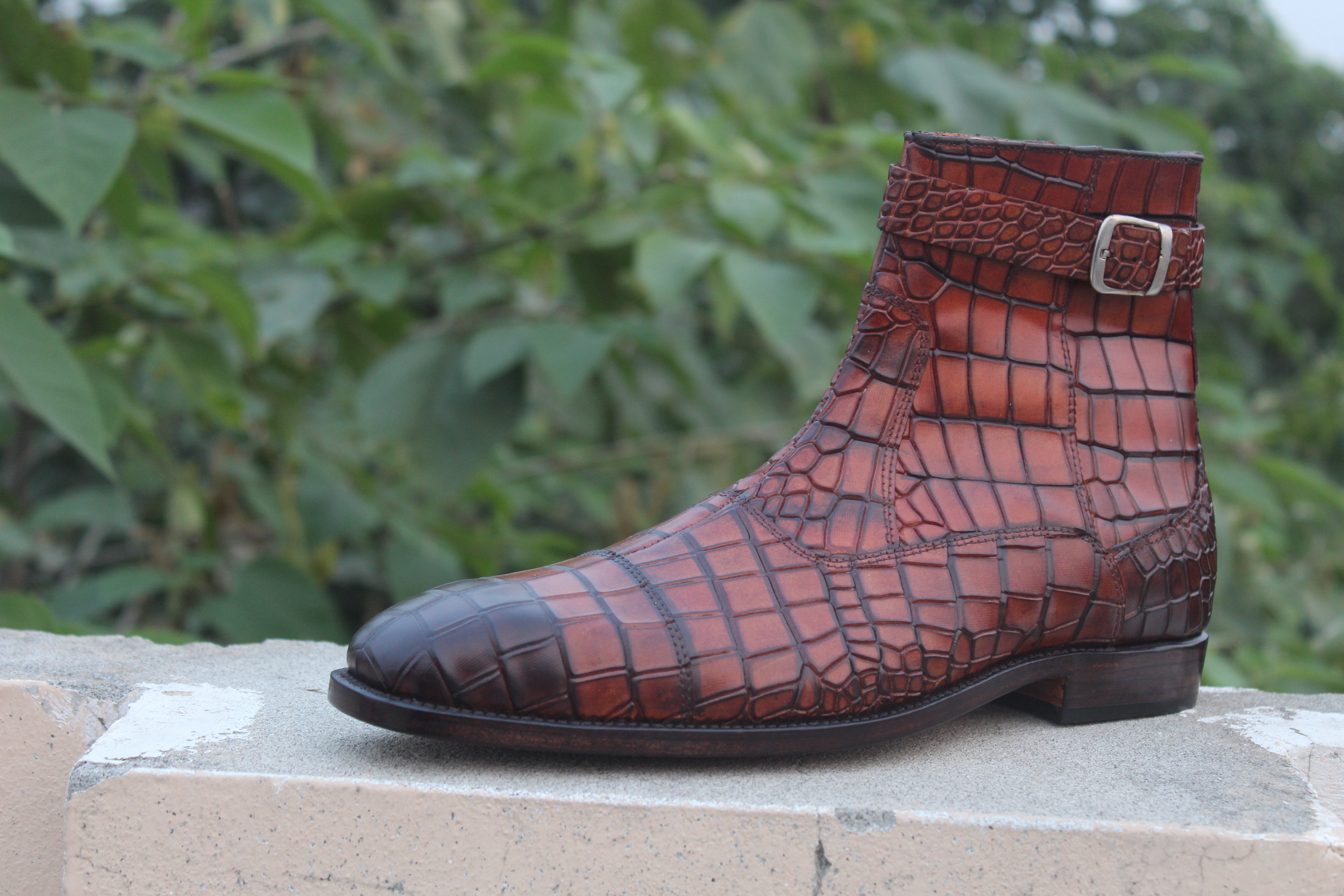 Crafted Leather Classic Brown Crocodile/Alligator Strap Jodhpur Boot