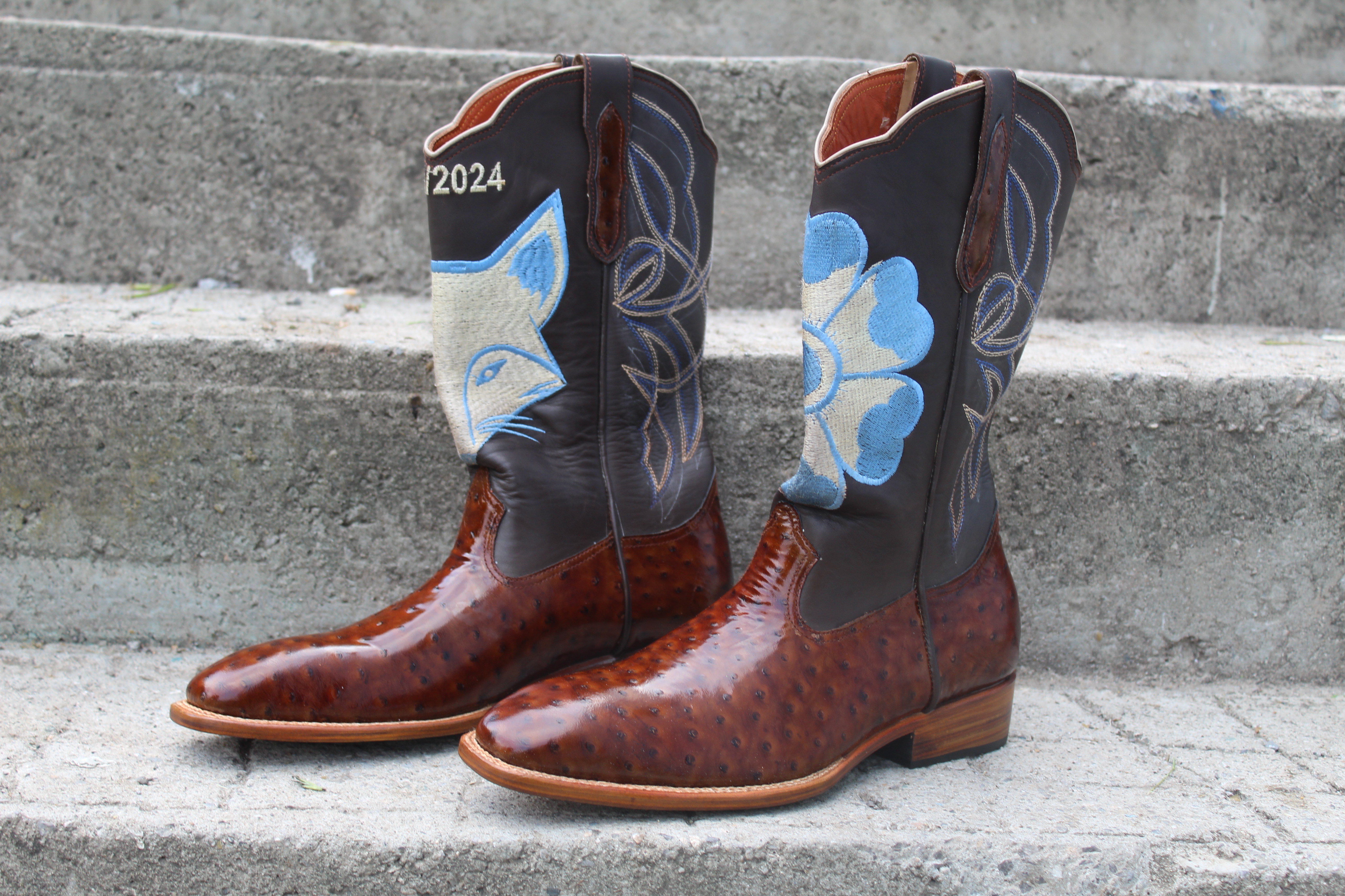 Crafted Leather Classic Men's Brown Ostrich Leather Cowboy Boots