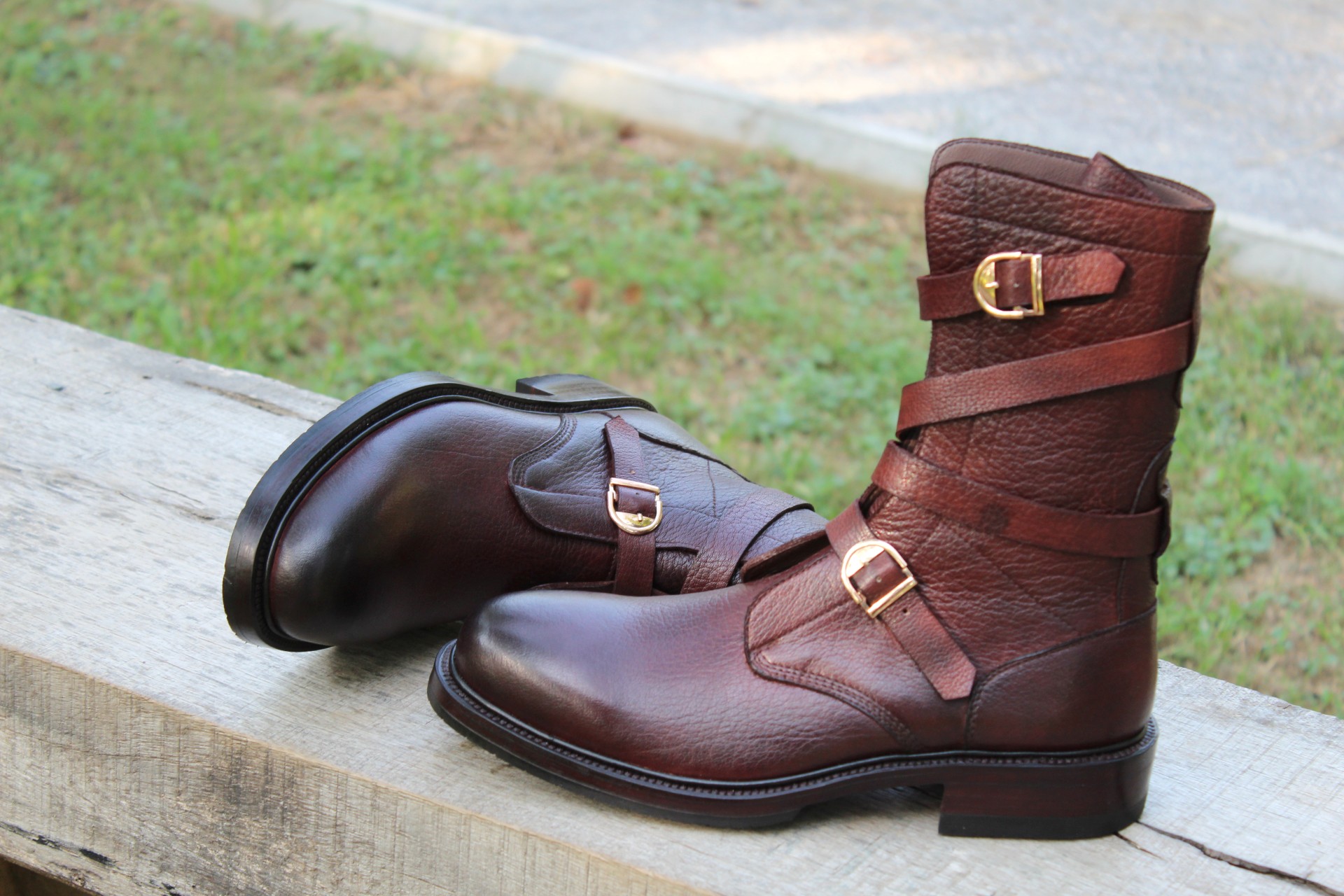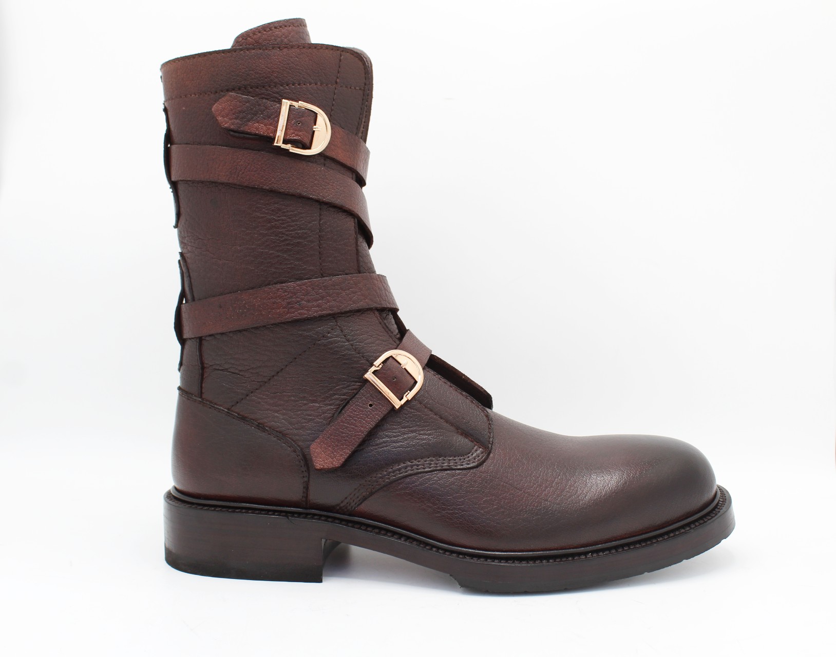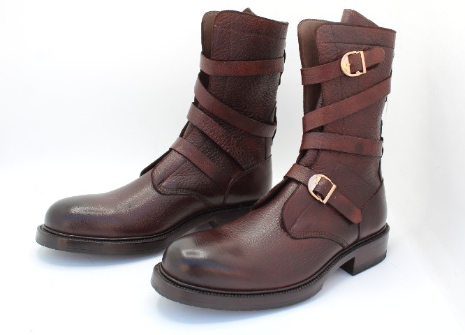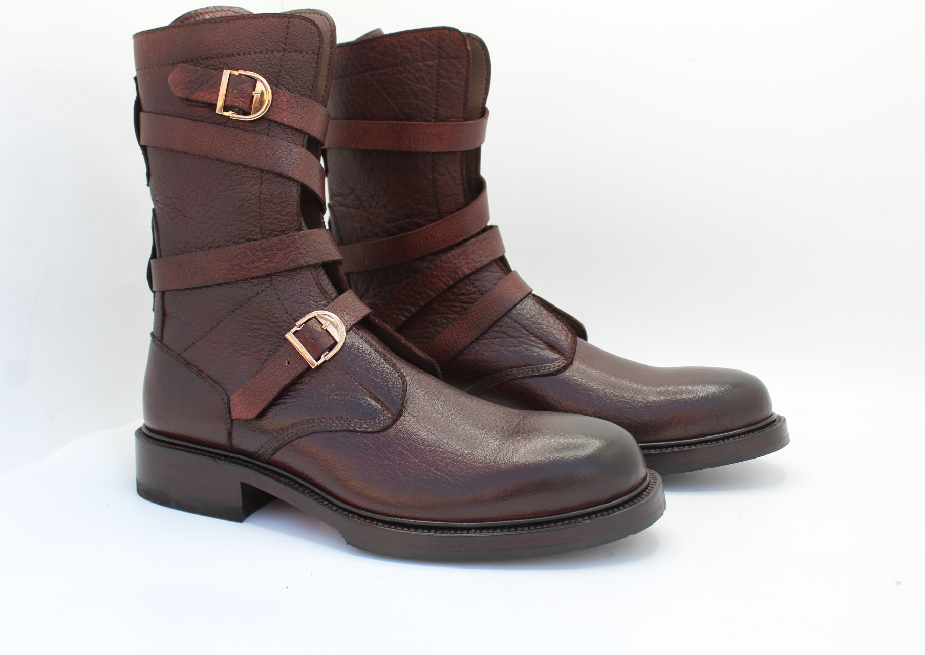 Handmade Burgundy Color Buckle Strap Long Military Ankle High Army Boot