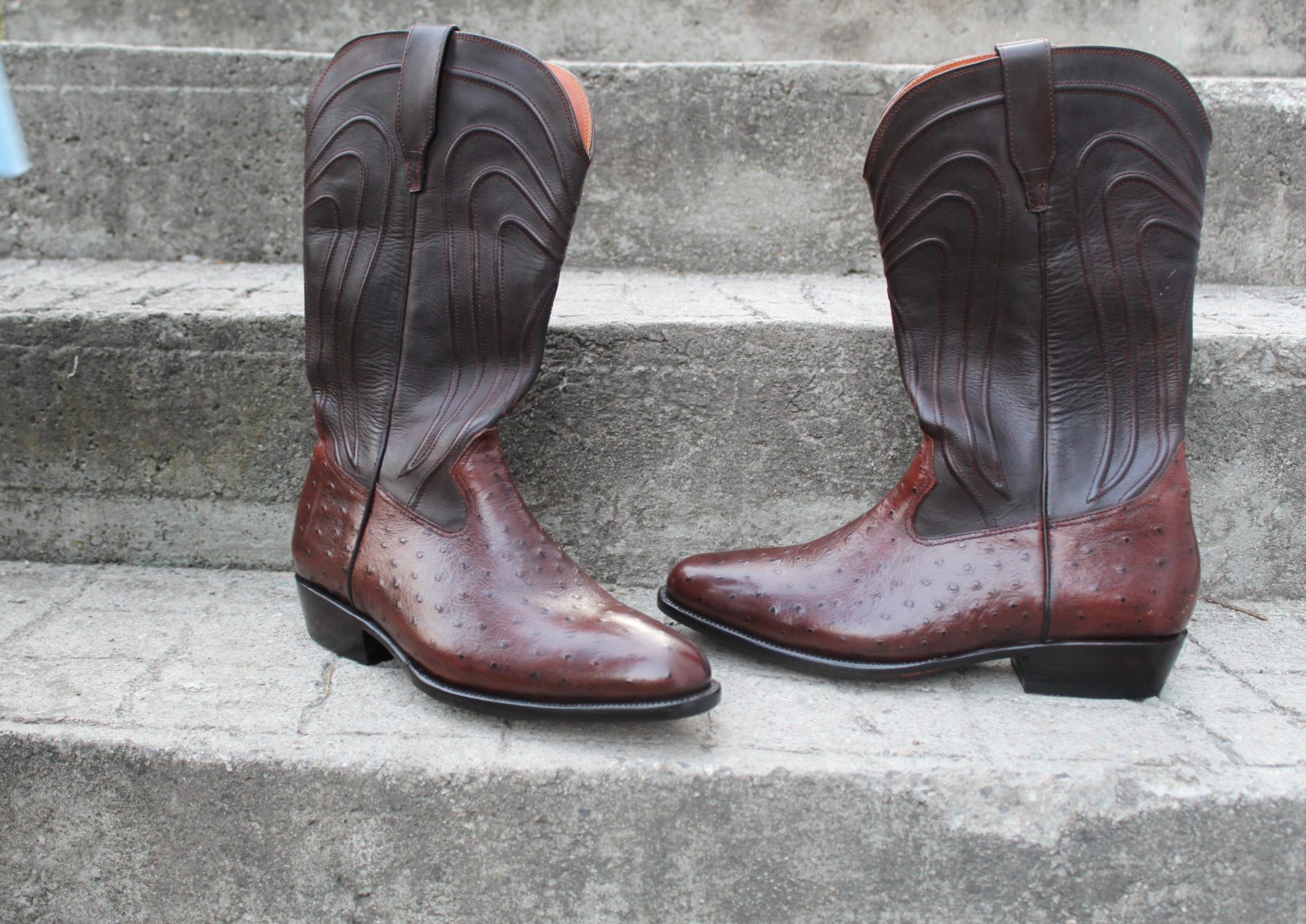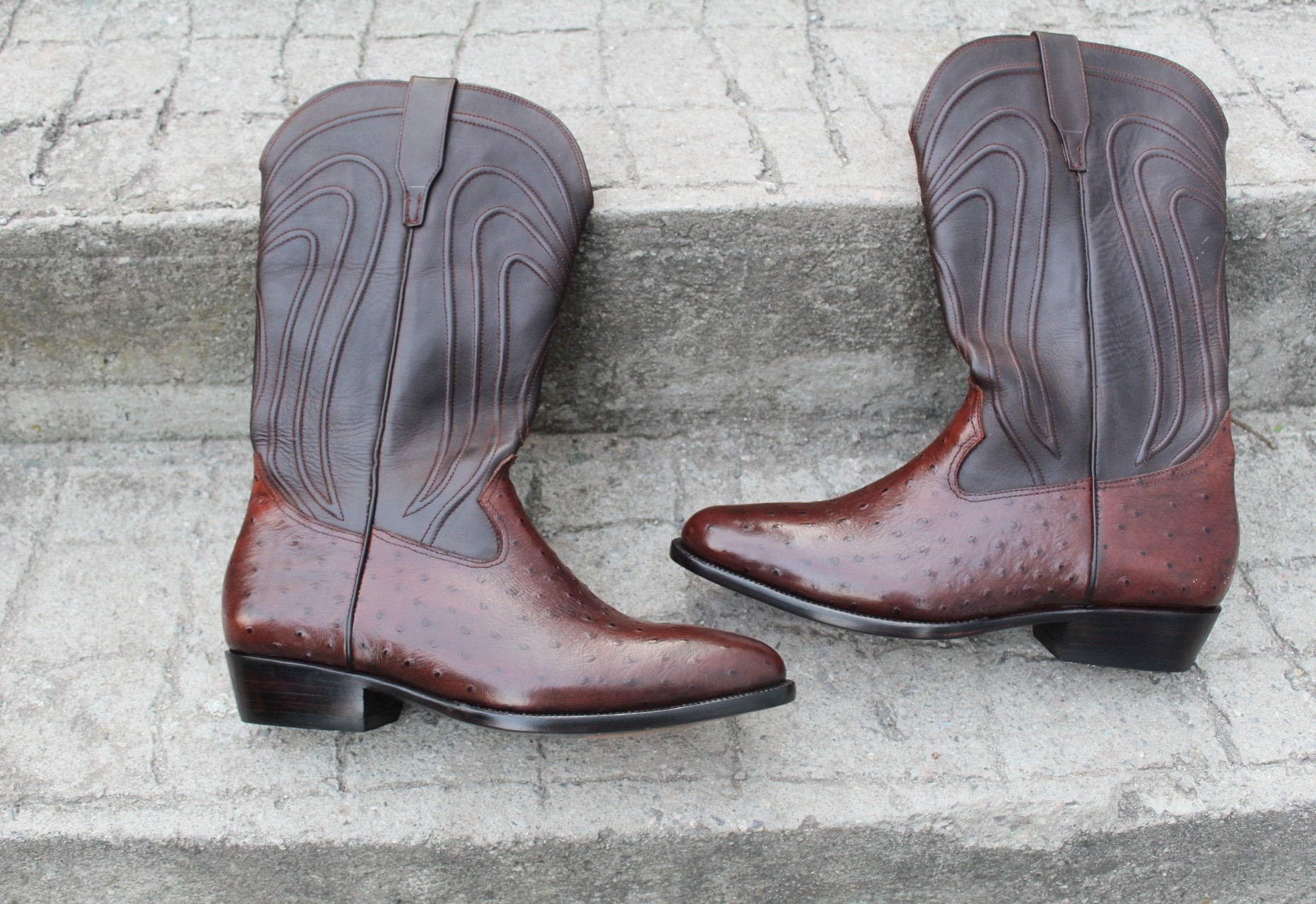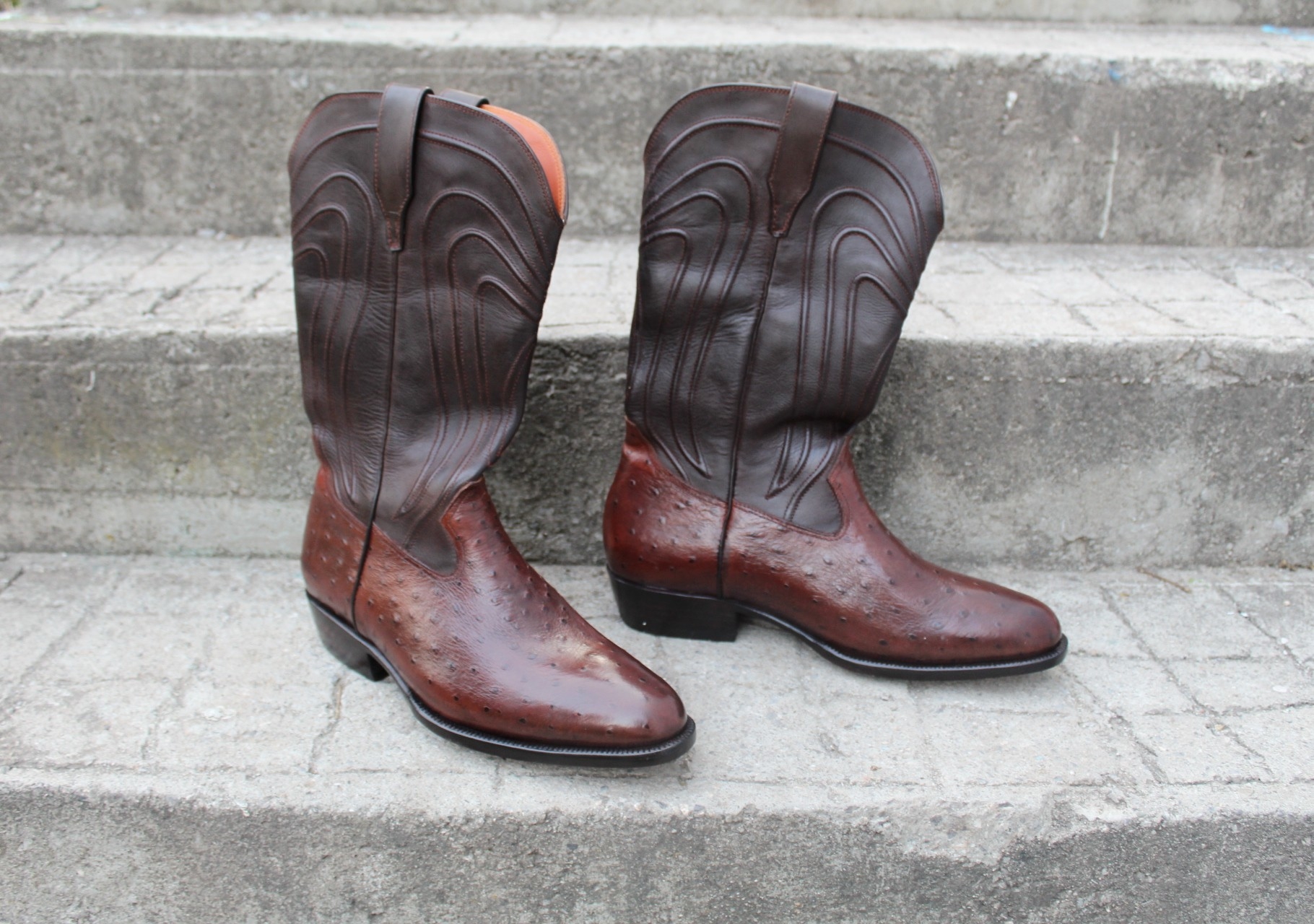 Crafted Leather Classic Men's Fashion Dark Brown Ostrich Leather Cowboy Boots