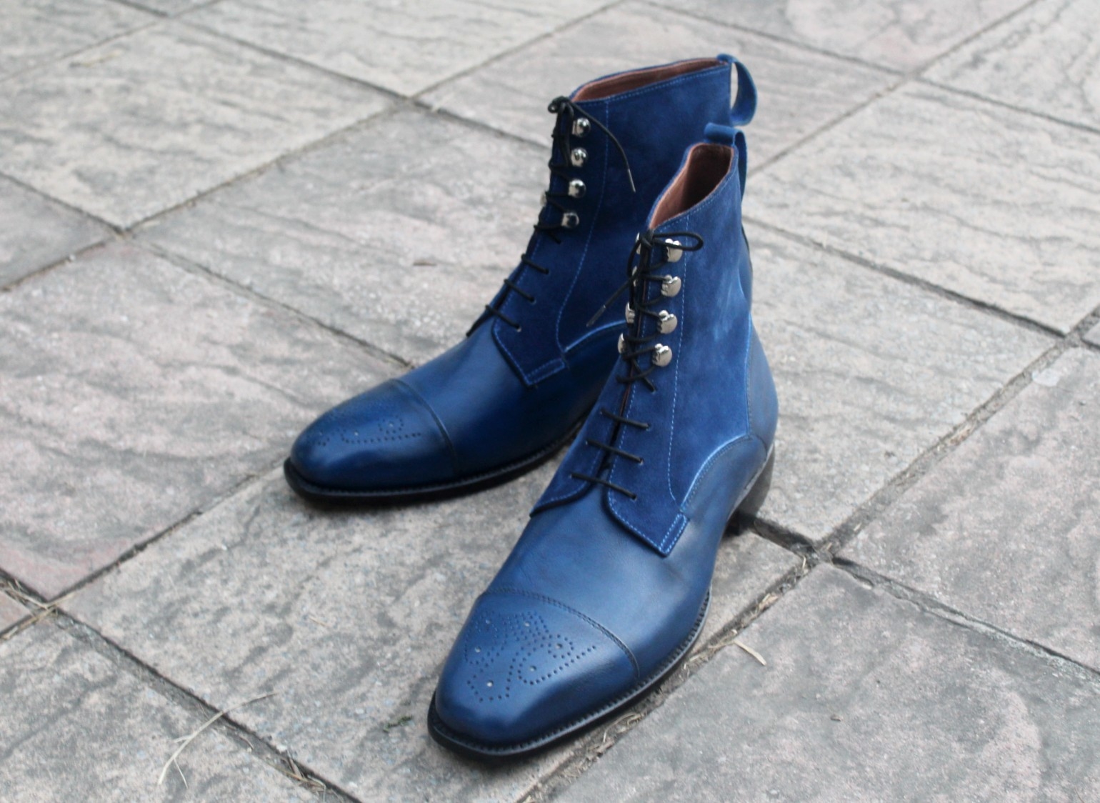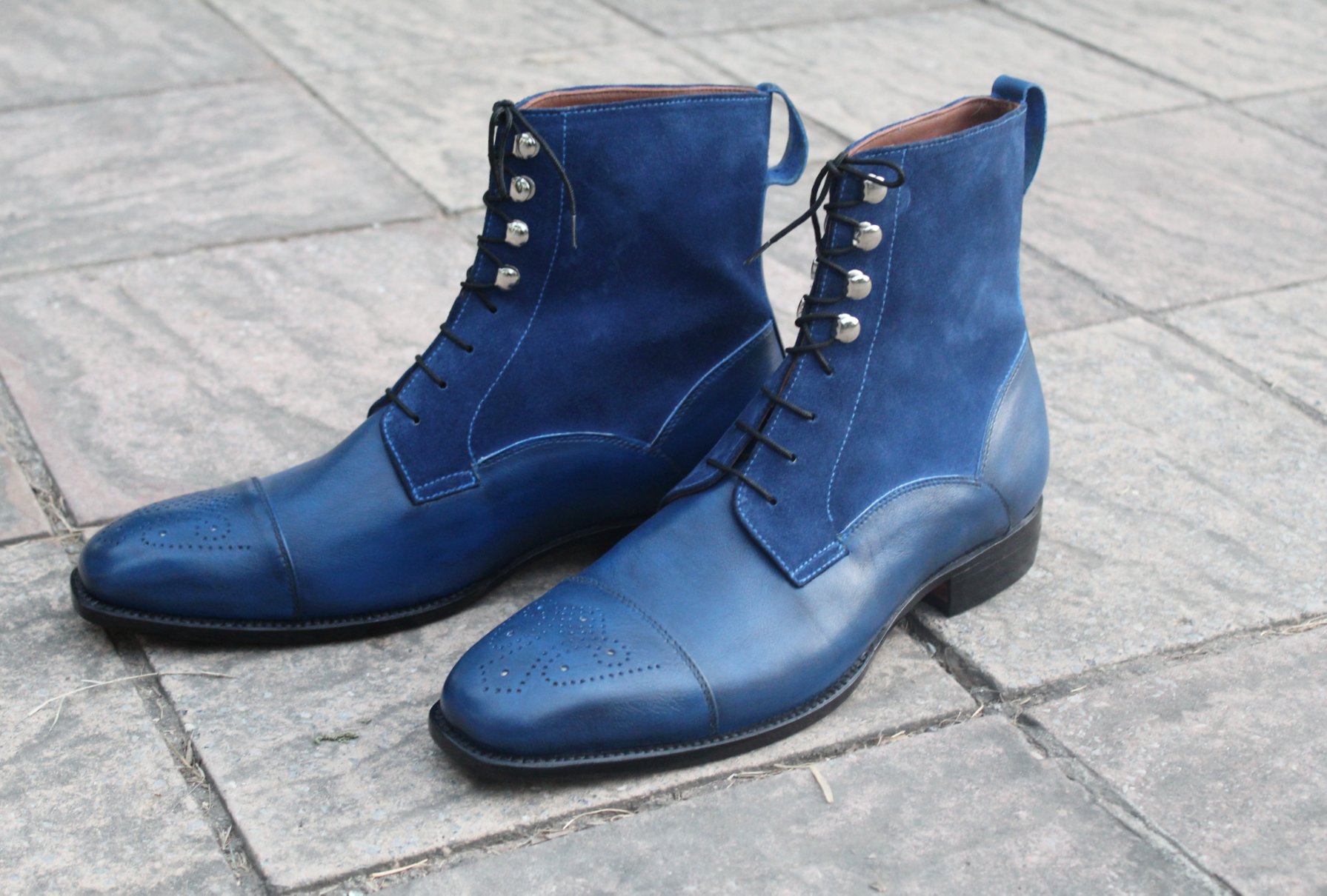 Crafted Leather Classic Handmade Men Blue Calf Suede Leather Ankle High Dress Boot