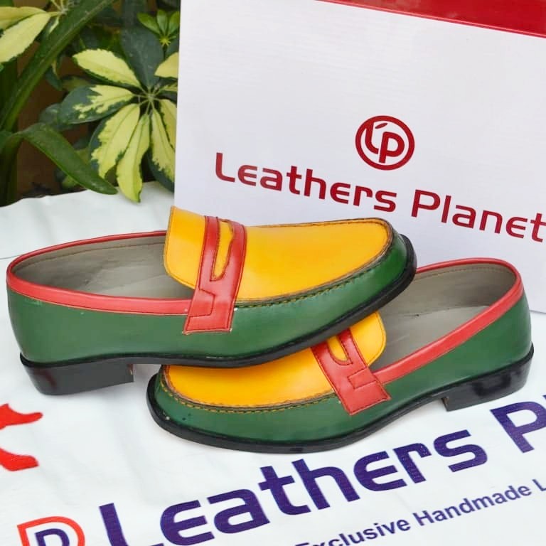 Inner: Soft Leather Sole: Leather Gender : Male Heel: Leather Color: Tri-Tone Color Style: Loafers Shoes Lining Soft Calf Leather Lining Totally Hand stitched Manufacturing time 7-10 business days If you can’t find your Size/Colorjust send us message we will make for you.