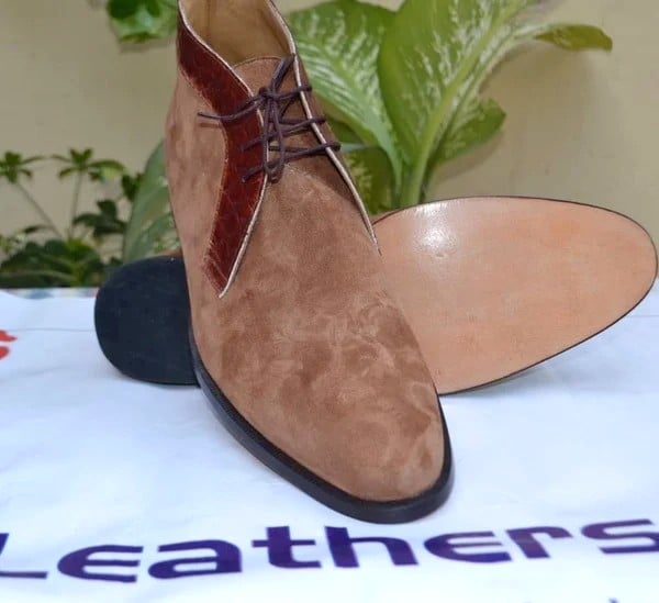 Crafted Leather Brown Suede Lace up Chukka Boot For Men