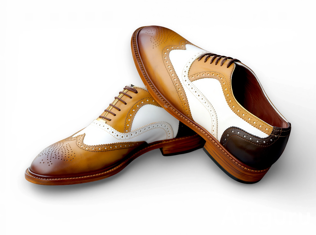 Crafted Leather New Handmade Brown White Leather Wingtip Oxford Lace up Dress Shoes