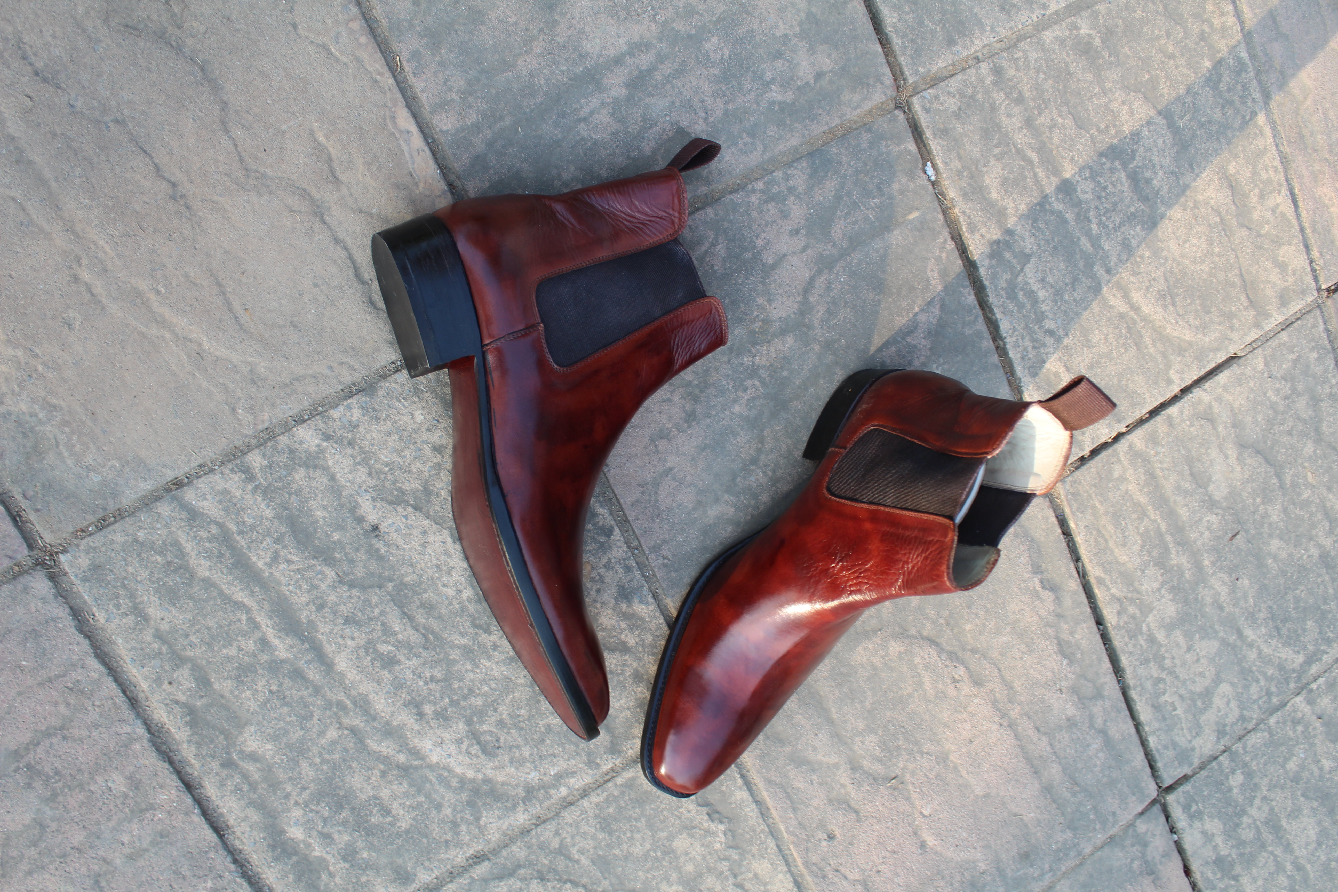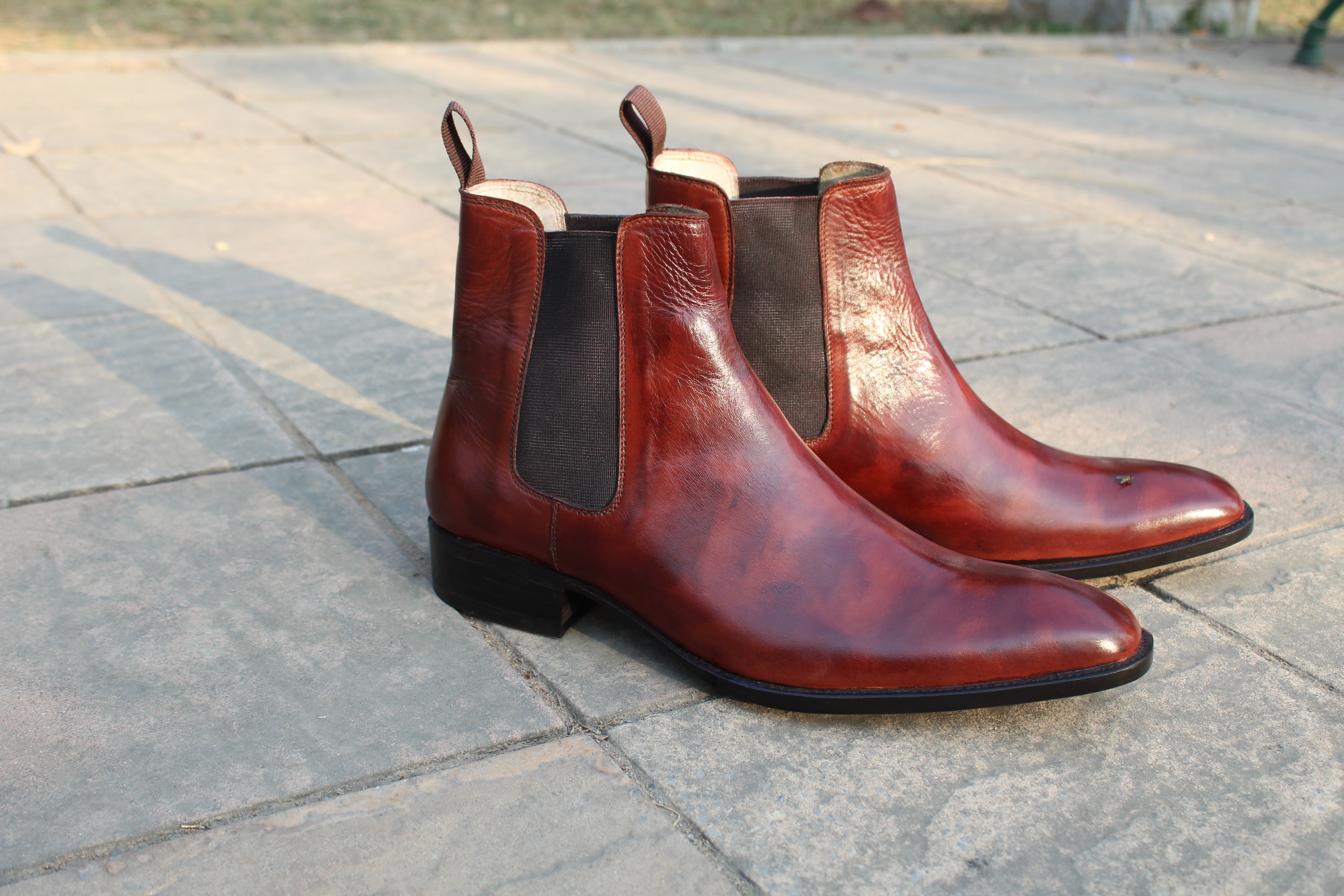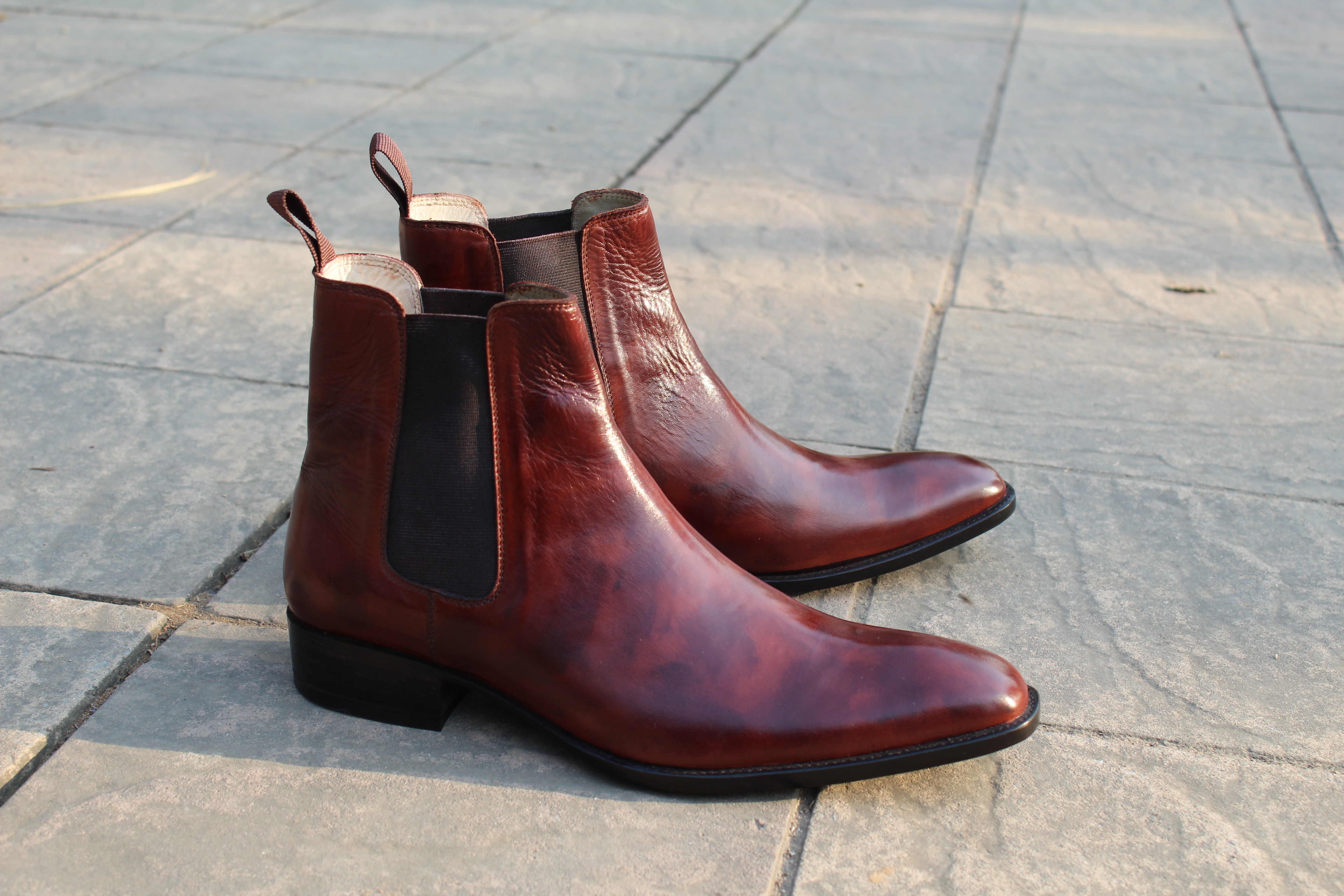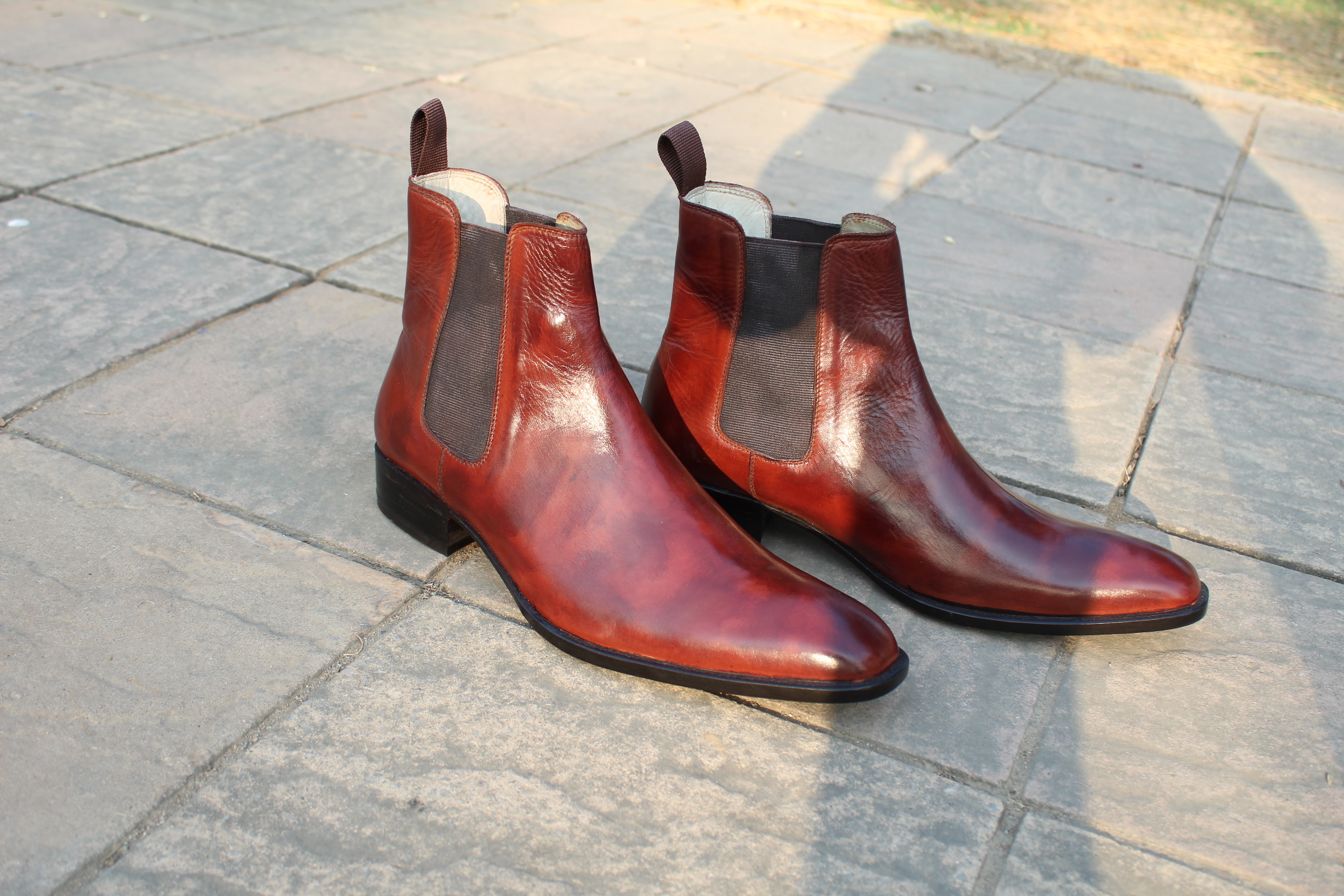 Classic Handmade Brown Patina Shaded Men Chelsea Boot