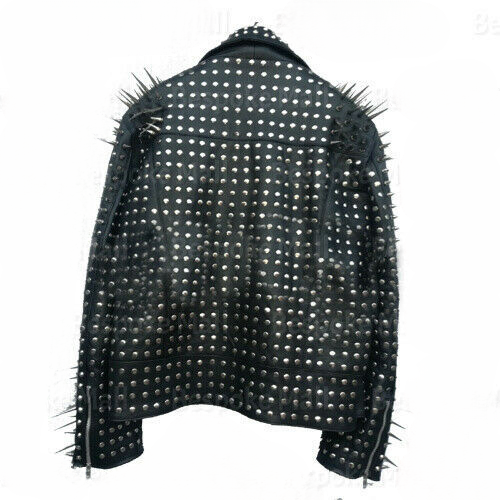 Men's Black Silver Spiked Studded Punk Leather Jacket