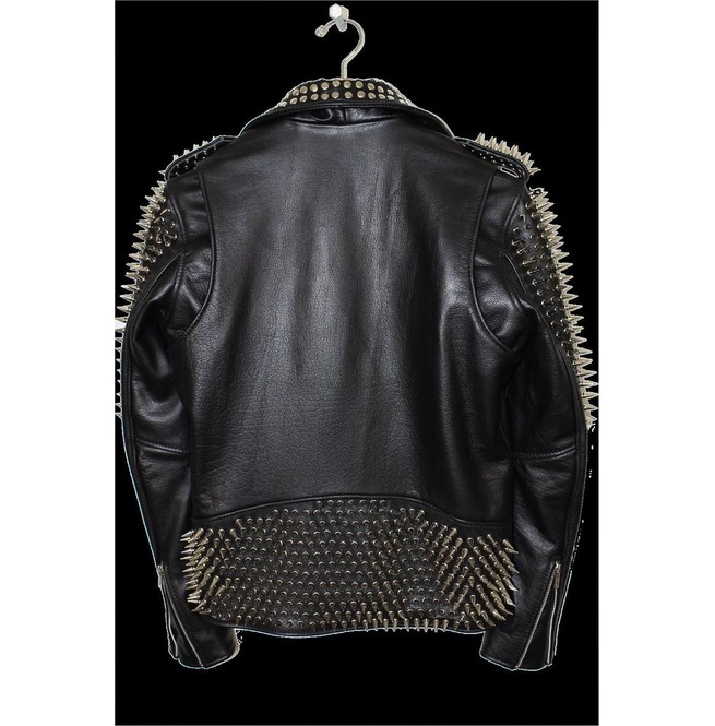 Men's Handmade Black Punk Silver Long Spiked Studded Cowhide Leather Jacket