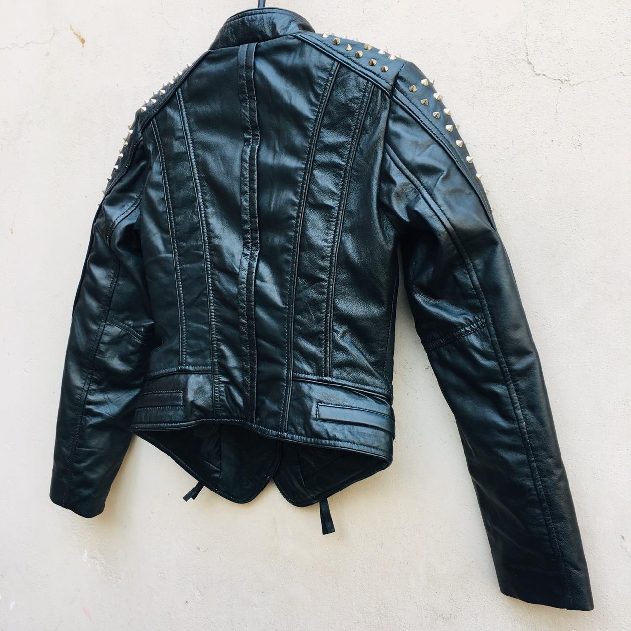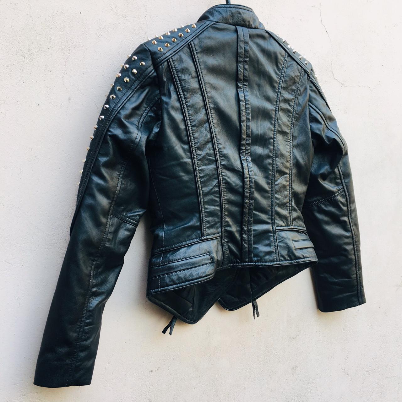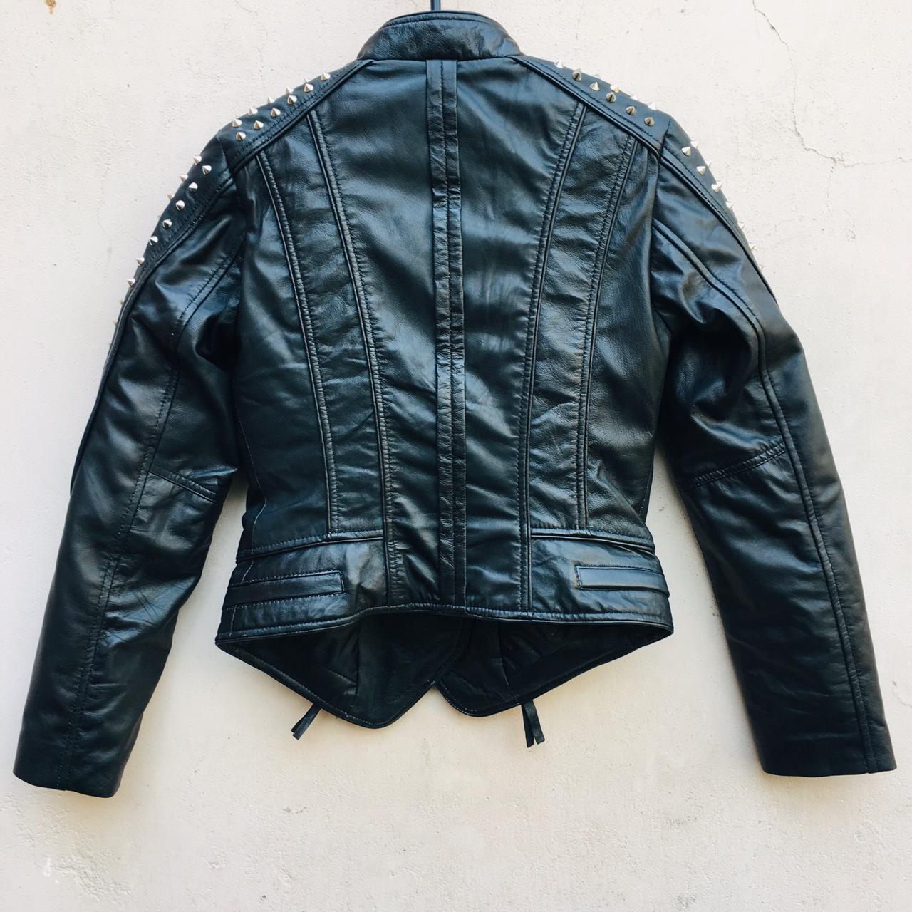 Women’s Stylish Studded Punk Style Black Leather Jacket