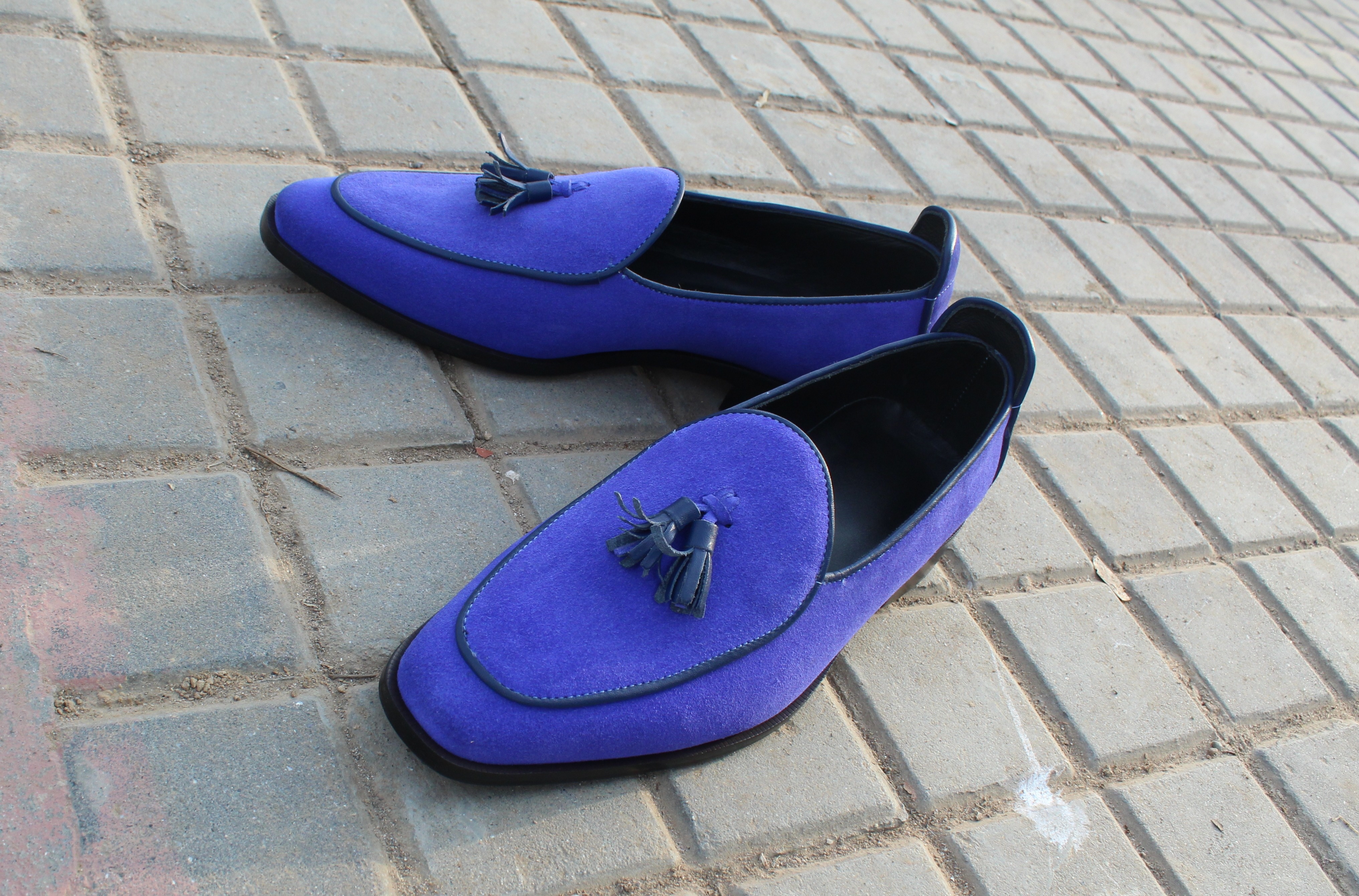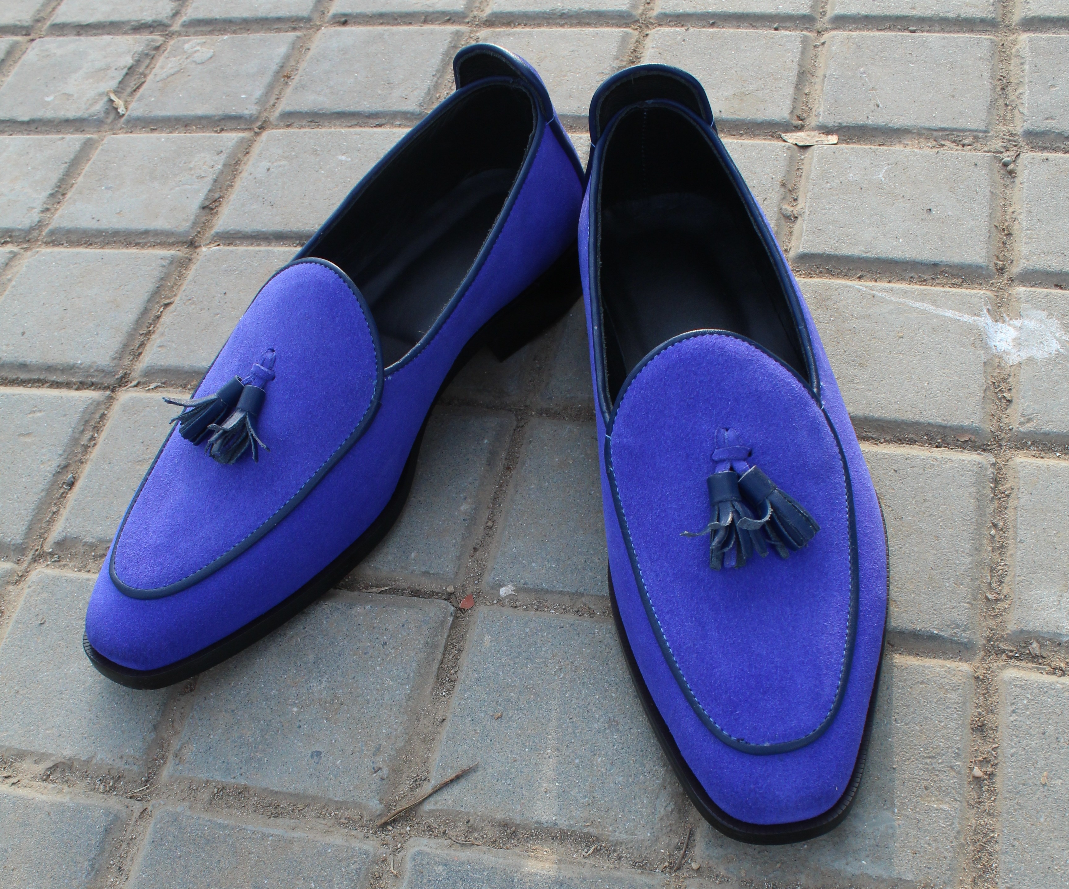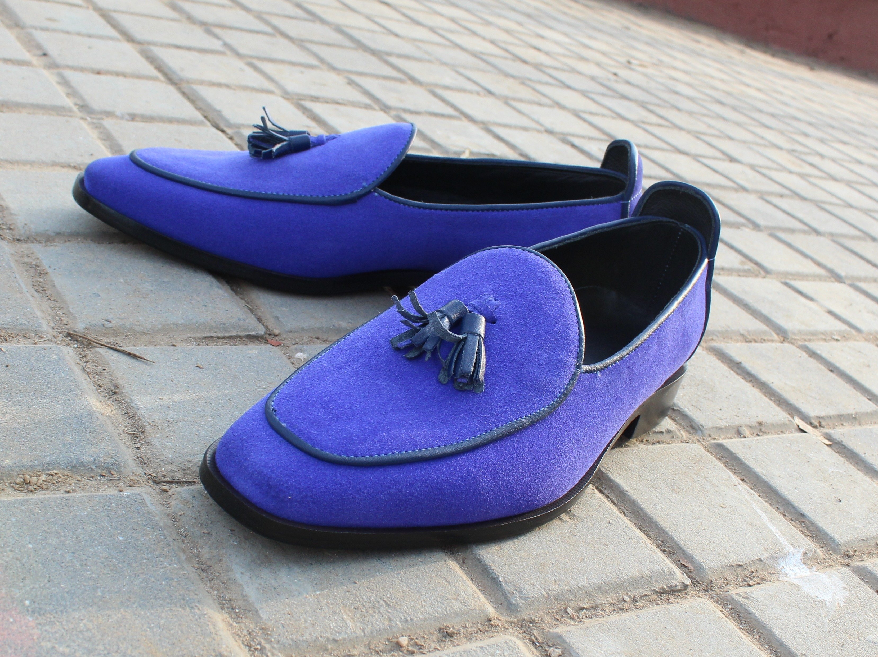 Inner: Soft Leather Sole: Leather Gender : Male Heel: Leather Color: Blue Style: Loafers Shoes Lining Soft Calf Leather Lining Totally Hand stitched Manufacturing time 7-10 business days If you can’t find your Size/Colorjust send us message we will make for you.
