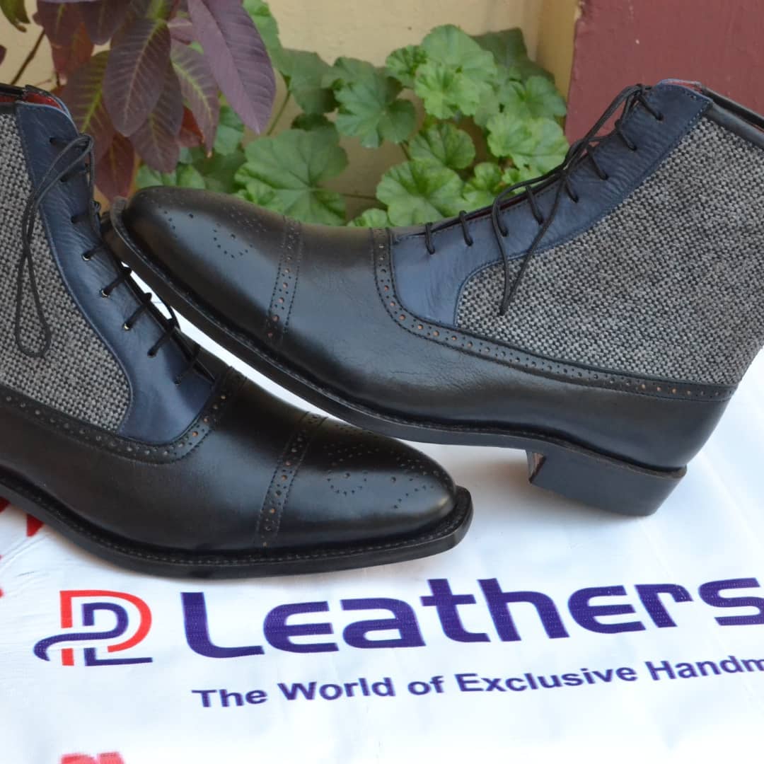 Custom Made Men Ankle High Black and Tweed Contrast Lace up Dress Boot