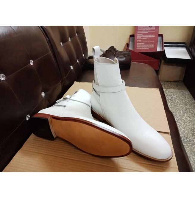 Inner: Soft Leather Sole: Leather Gender : Male Heel: Leather Color: White Style: Jodhpur Boot Totally Hand stitched Manufacturing time 7-10 business days If you can’t find your Size/Colorjust send us message we will make for you.